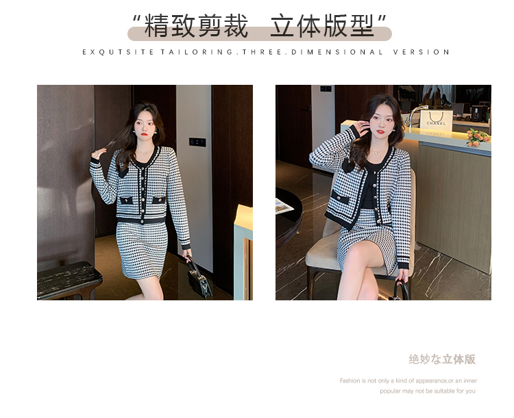 RM24331#针织毛衫亲肤小香外套套装千鸟格小香风裙子