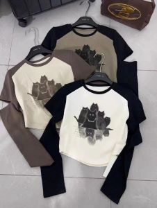 RM24410#新款设计感显瘦时尚休闲创意长袖割破袖T恤