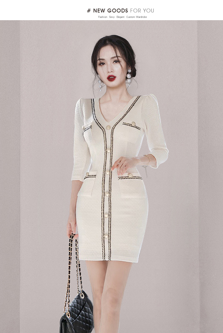 RM24456#新款韩版时尚优雅显瘦性感包臀七分袖V领简约休闲连衣裙