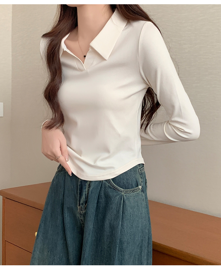 RM24552#时髦时尚洋气翻领长袖t恤女学院风polo领打底衫秋冬内搭上衣