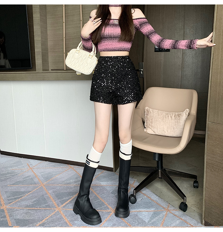 RM24987#新款满亮片闪亮拉链名媛三分短裤热裤女