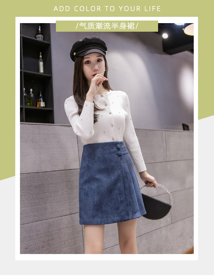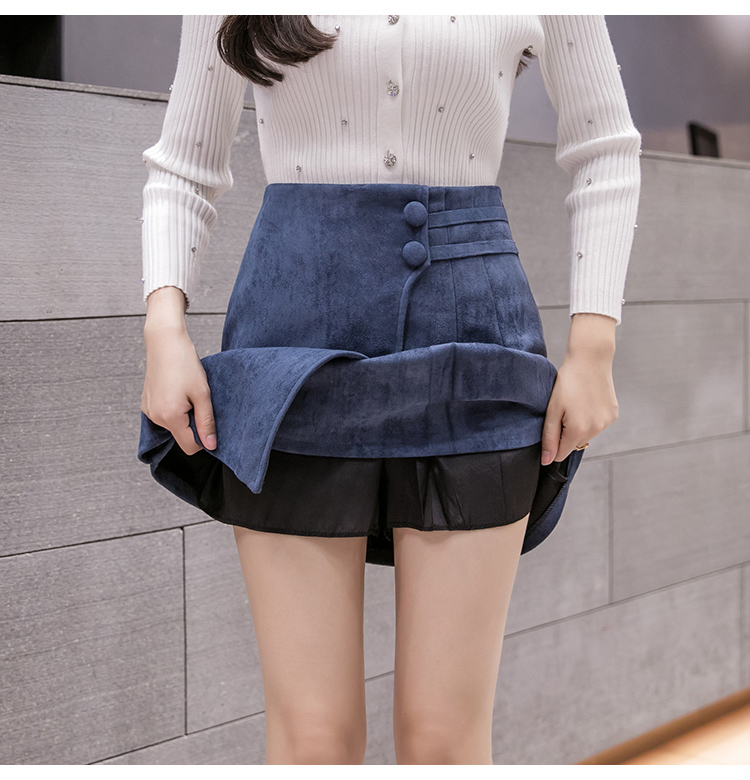RM25080#麂皮绒半身裙女2023冬季韩版百搭时尚高腰显瘦防走光半裙