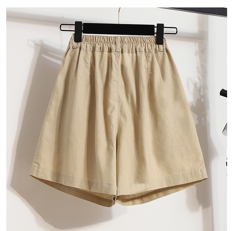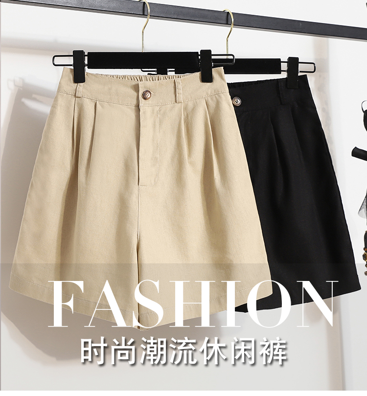 RY1860#亚麻五分裤洗水女纯色显瘦亚麻直筒裤夏季新款松紧腰薄款中裤
