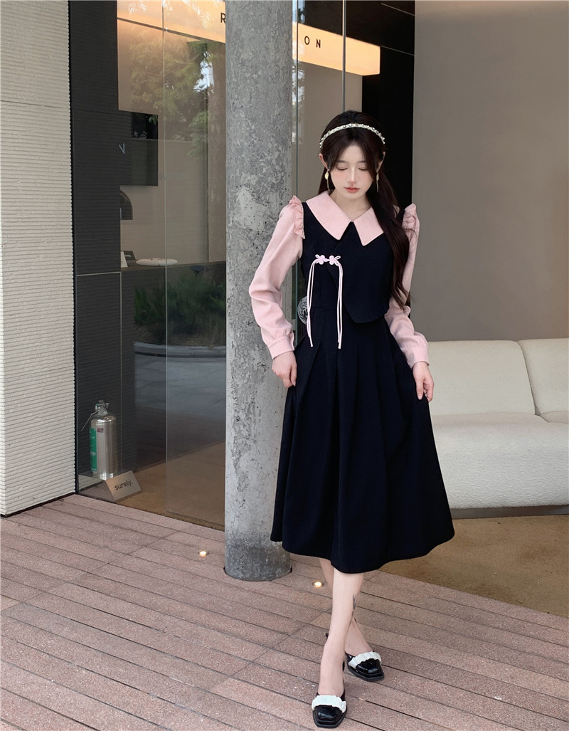 RM25271#大码法式拼接收腰连衣裙2023早秋甜美气质长裙女