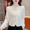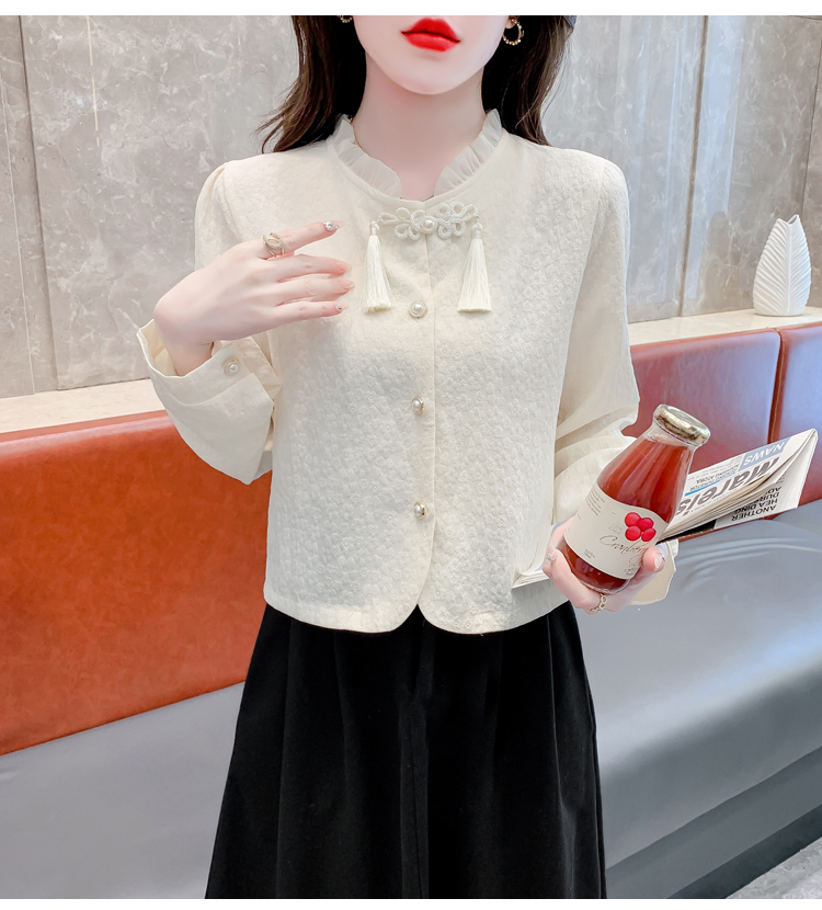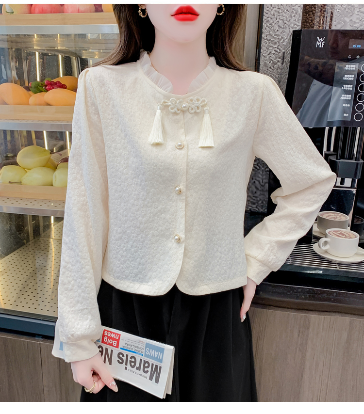 RM25294#中式木耳边设计感法式盘扣洋气淑女复古提花气质长袖小衫上衣女