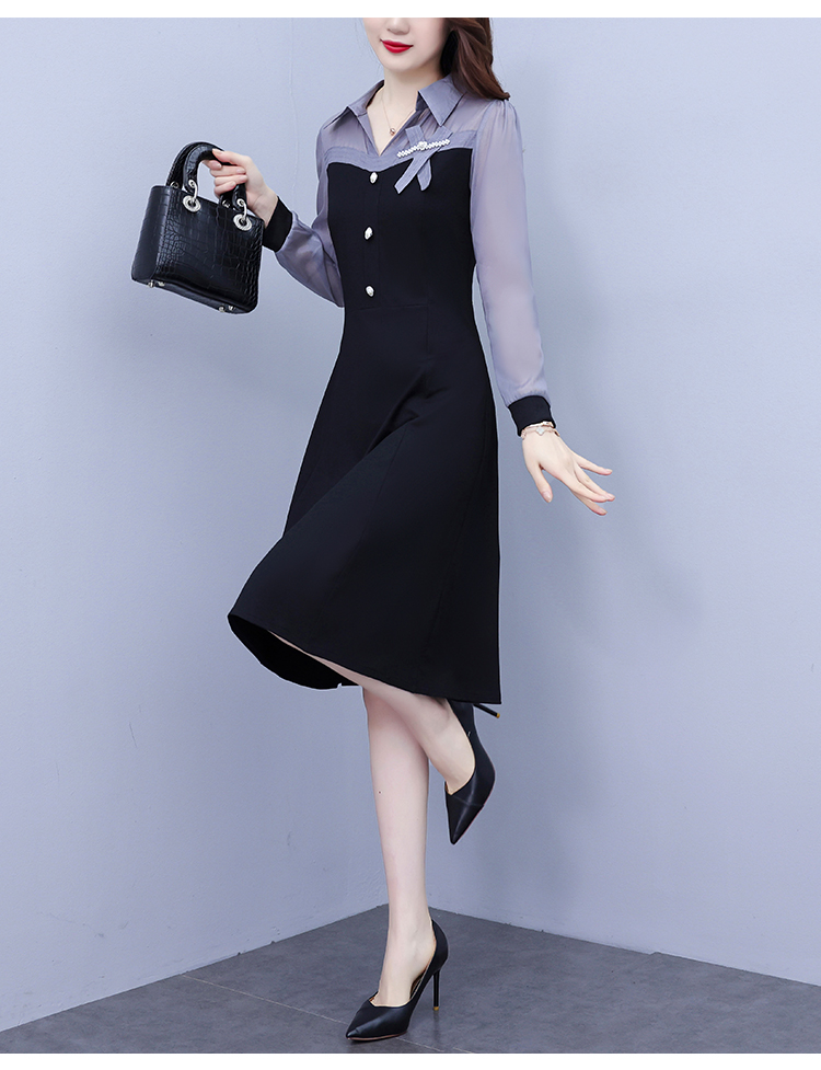 RM23534#高级感假两件雪纺连衣裙女2023秋冬新款高腰开叉气质长裙
