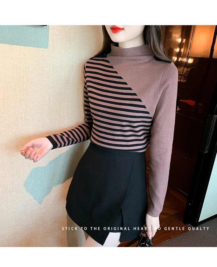 RM25451#新款不对称设计感条纹拼接毛衣女洋气内搭羊毛针织衫