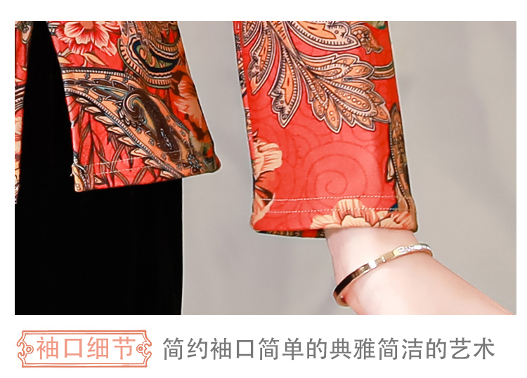 RM25504#新款盘扣长袖复古德绒提花旗袍衫T恤妈妈大码弹力上衣