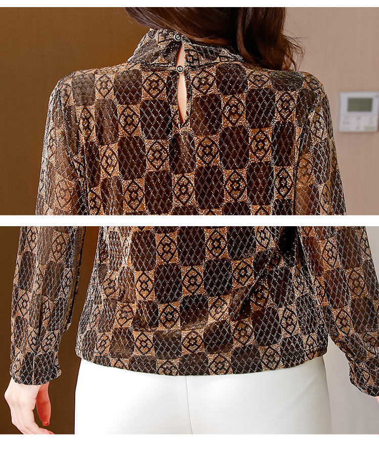 RM25516#打底衫外穿上衣2023秋冬新款网纱长袖t恤女优雅性感复古立领加绒