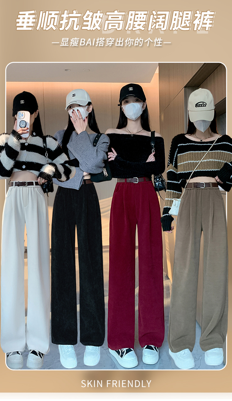 RM25602#新款高腰显瘦灯芯绒阔腿裤垂感显瘦拖地裤