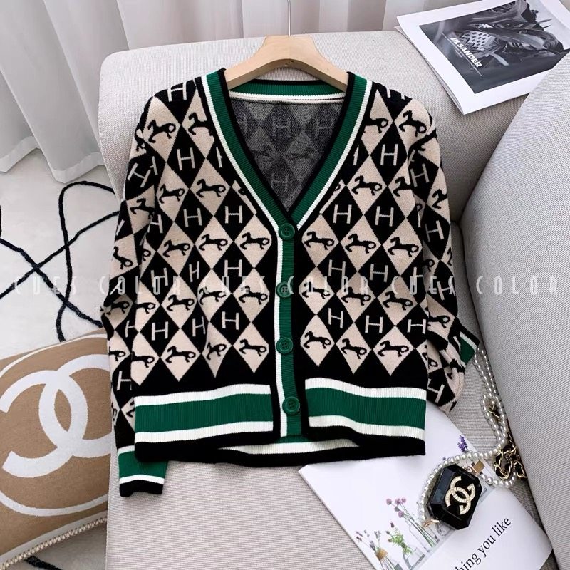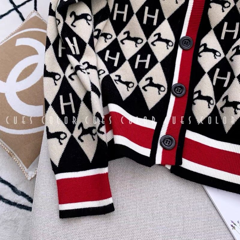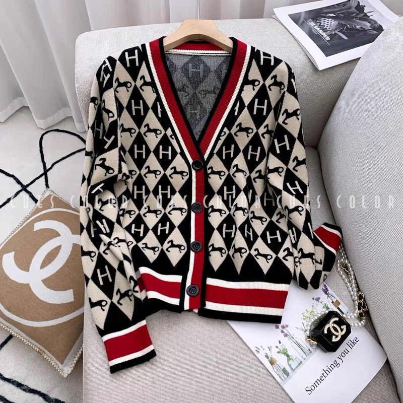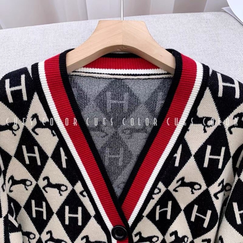 RM25938#复古短款毛衣外套女时尚v领长袖针织开衫宽松百搭2023春秋潮