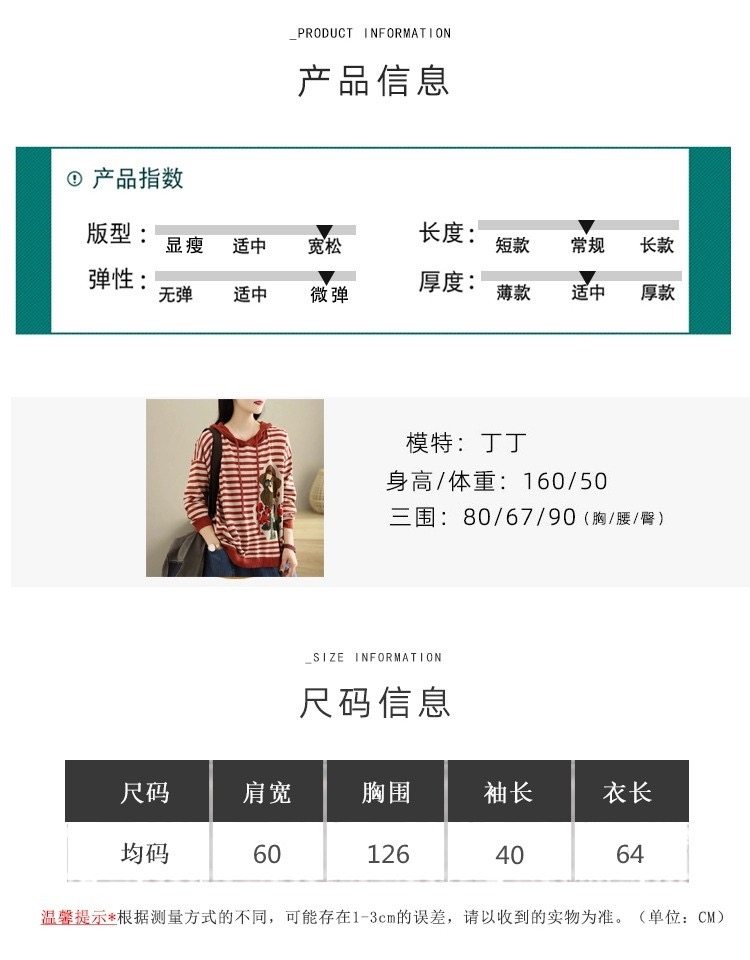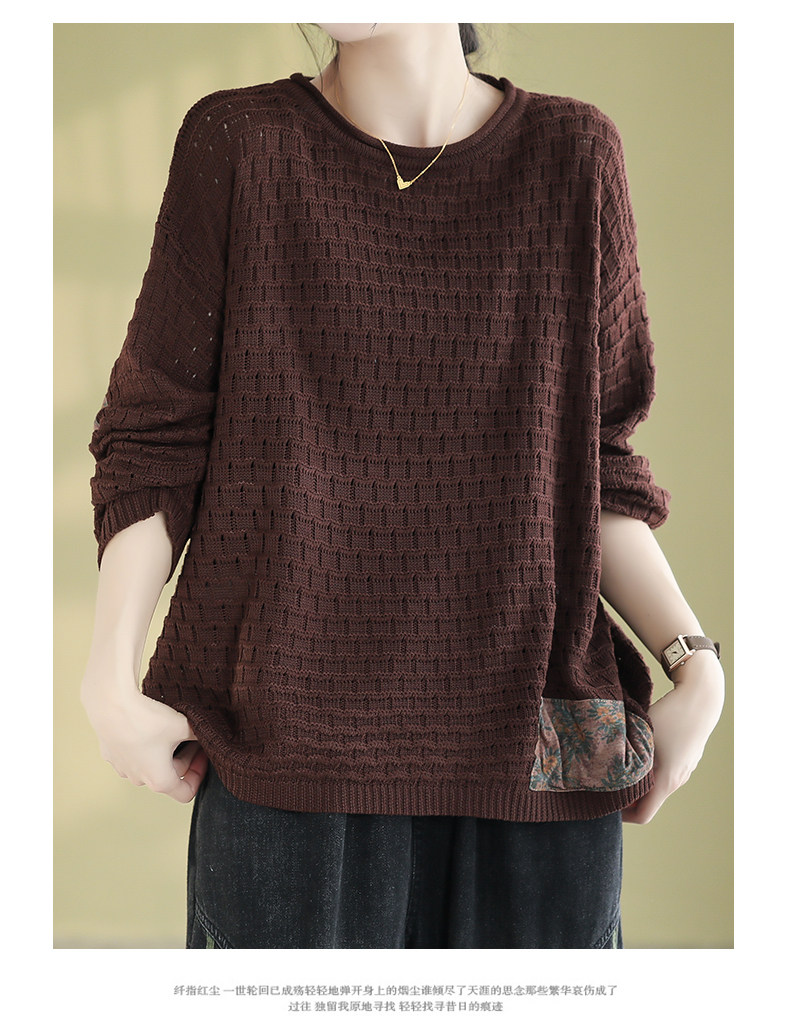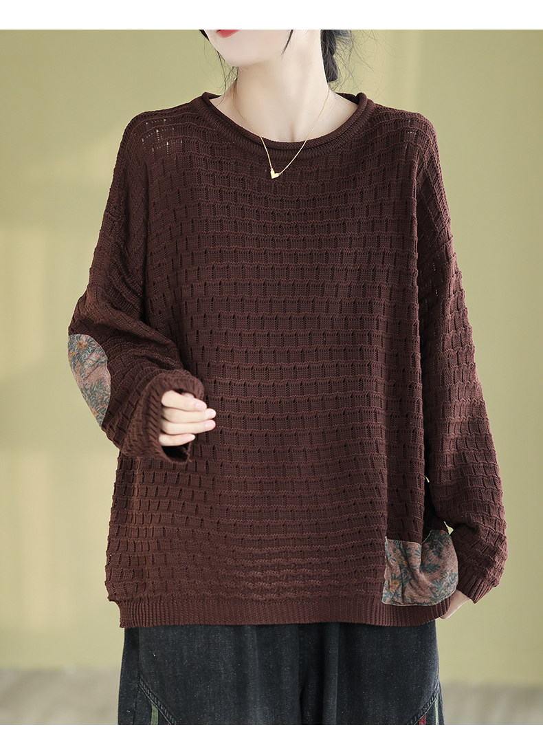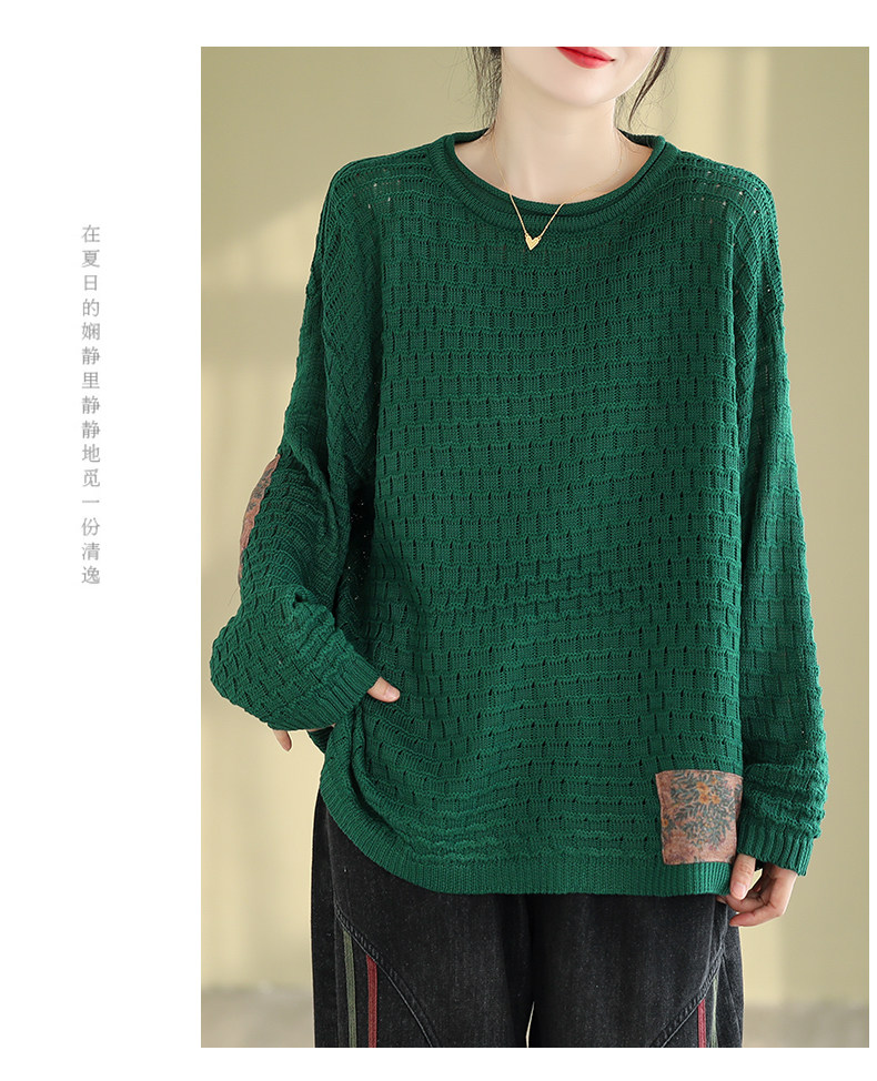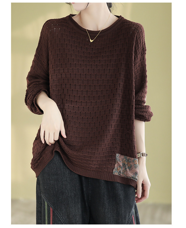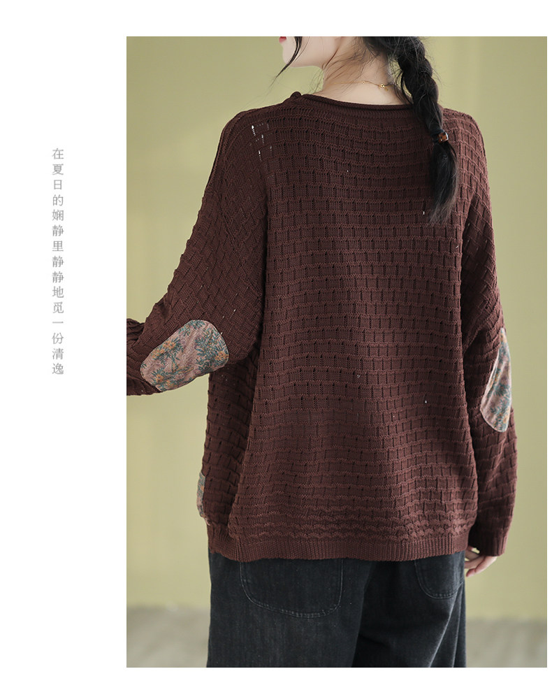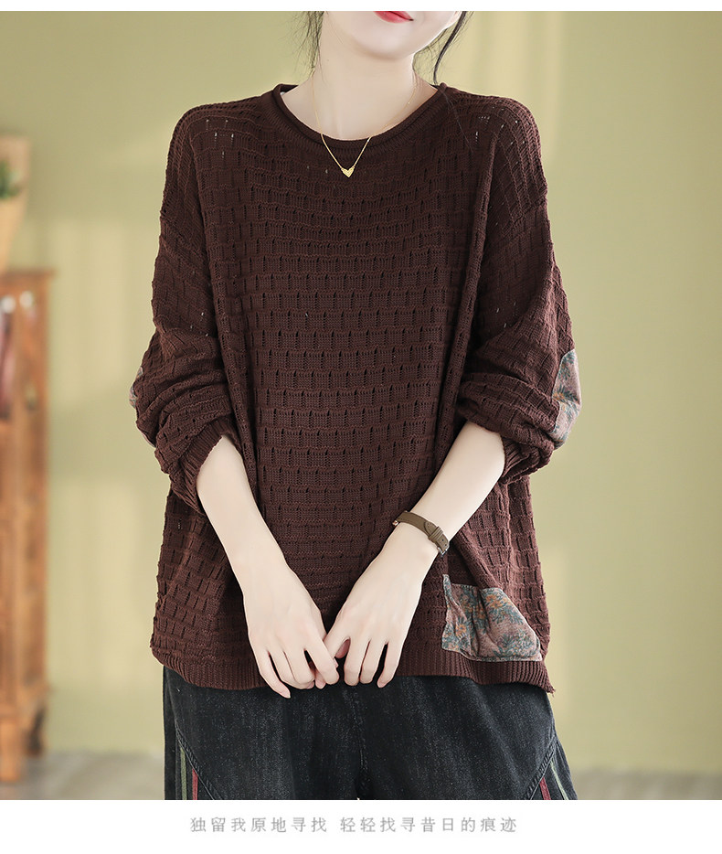 RM25945#复古贴布针织毛衣女秋冬宽松慵懒2023民族风圆领套头长袖毛衣
