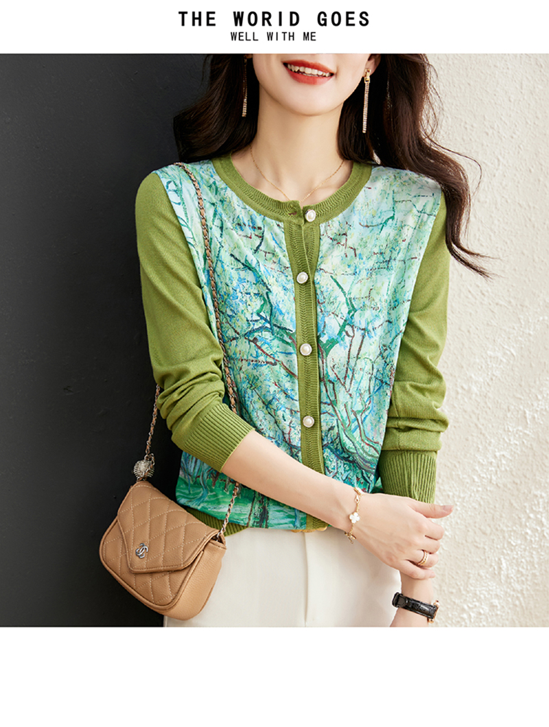 RM26083#针织衫开衫女宽松秋季 新款绿色长袖外套春秋时尚洋气小众上衣