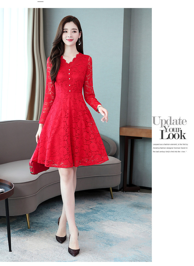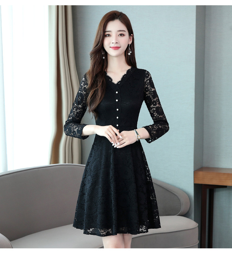 RY1899#长袖连衣裙蕾丝大码女装新款秋装女中长款冬季加绒打底裙子潮