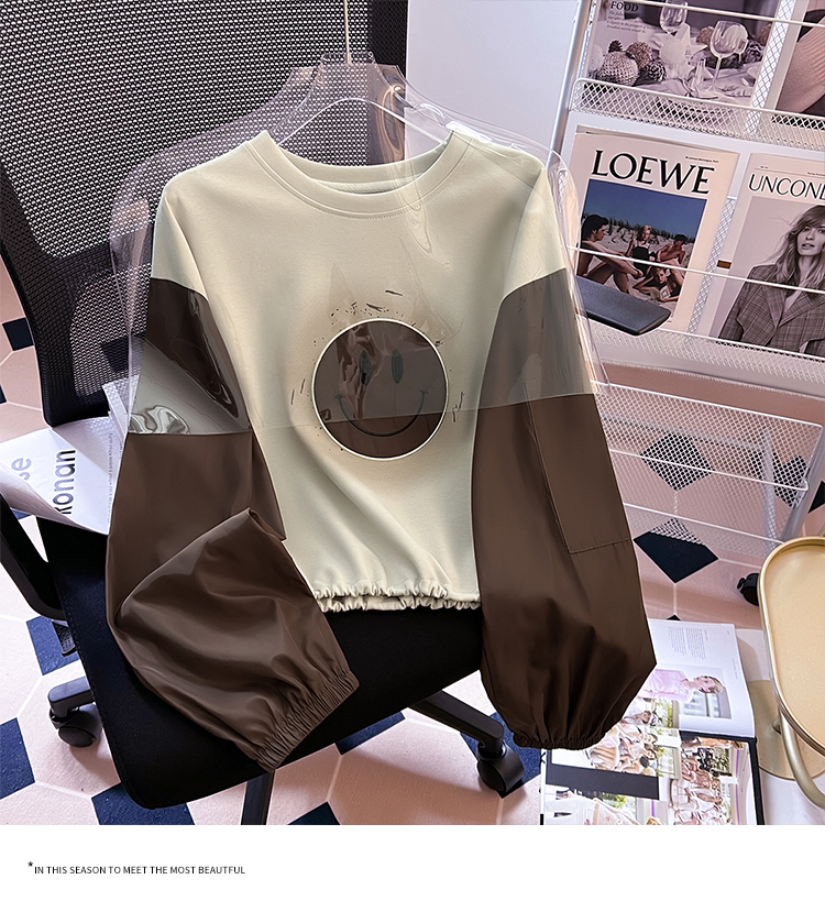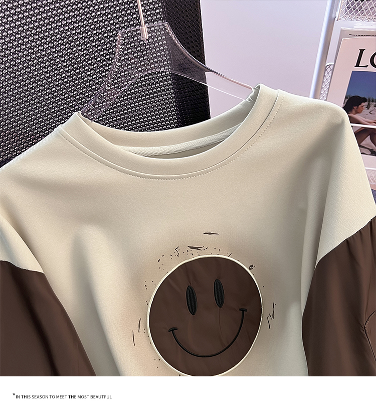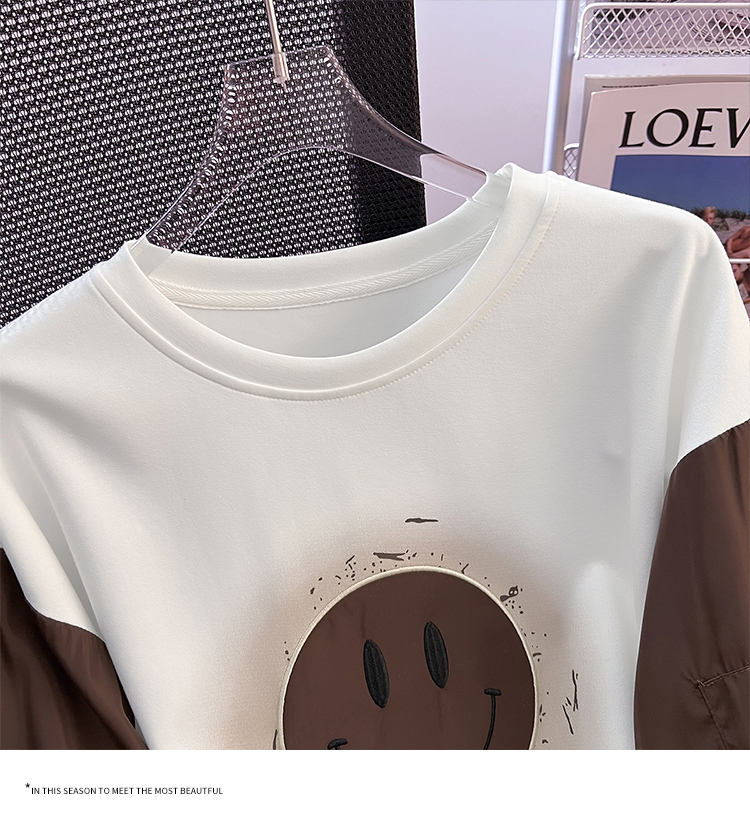 RM26346#长袖卫衣女宽松百搭刺绣拼接上衣外穿潮