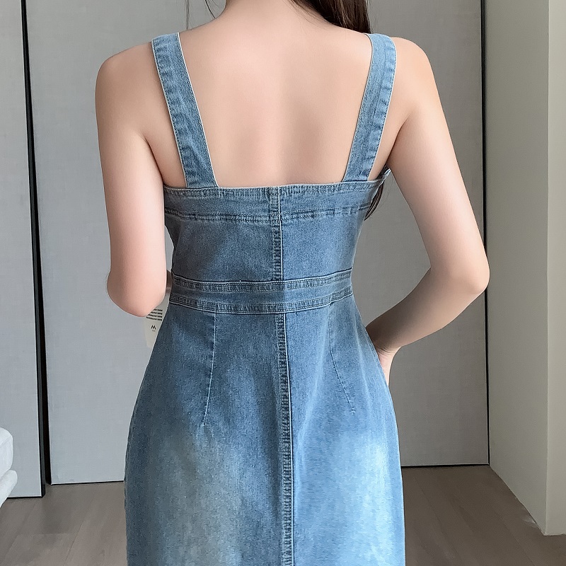 RM26764#宽松休闲百搭牛仔背带裙中长款显瘦连衣裙女