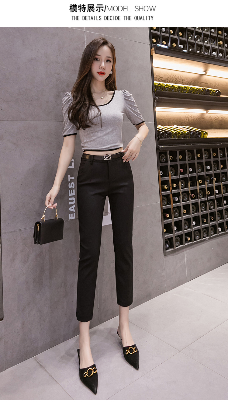 RY1924#休闲九分西裤职业OL春夏新款白色小脚裤百搭显痩黑色铅笔裤长裤
