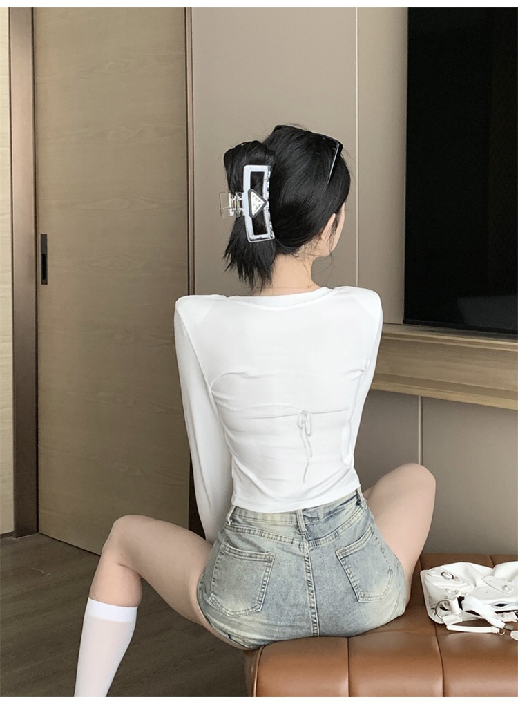 RM27340#秋冬长袖T恤女修身显瘦腹肌印花性感上衣纯欲辣妹垫肩