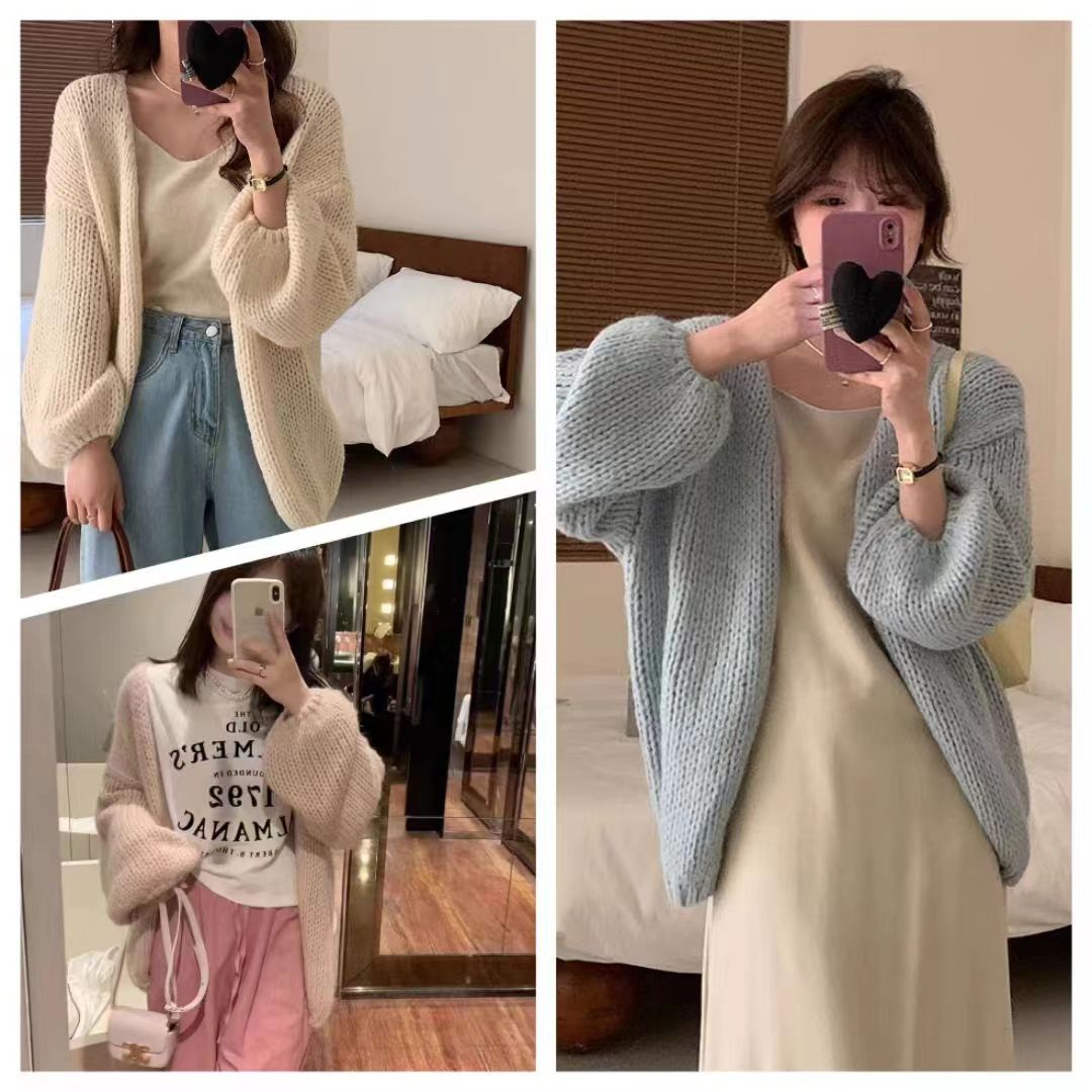 RM27378#气质慵懒风针织开衫外套女2023春秋新款韩版温柔宽松镂空毛衣罩衫