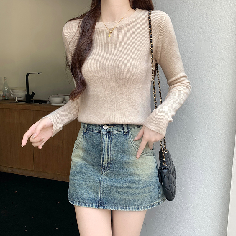 RM27385#基础圆领纯色打底针织衫女秋冬毛衣修身显瘦软糯内搭上衣