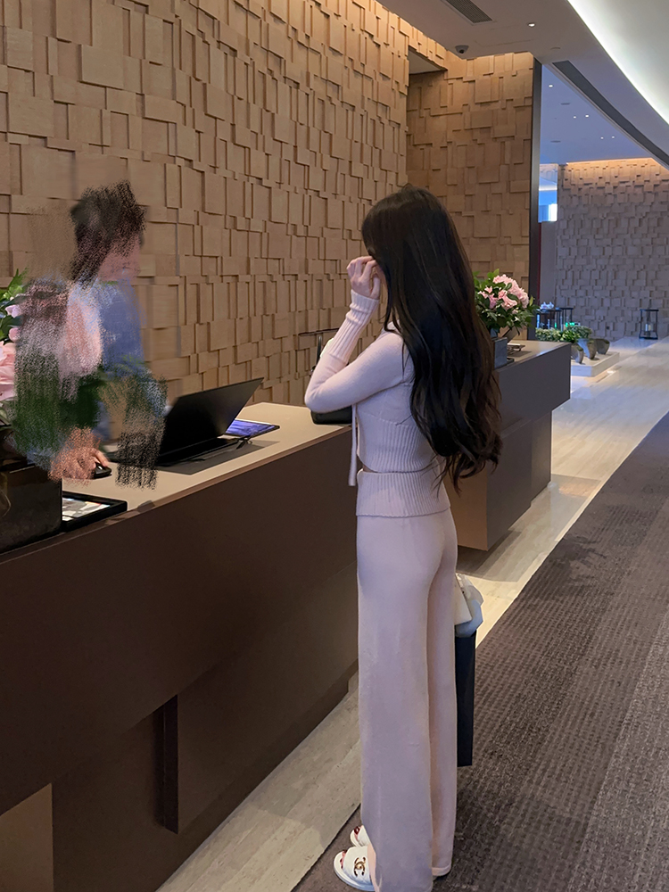 RM27420#软绵绵小兔运动套装软糯针织上衣高腰长裤内搭两件套女秋冬