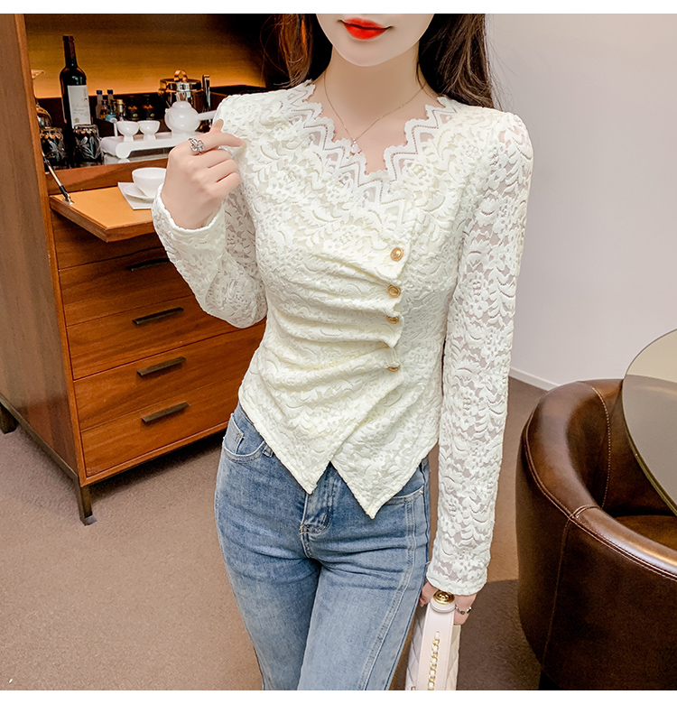PF28072# 原创 高级感气质千金修身收腰设计蕾丝打底上衣女裝貨源服裝...