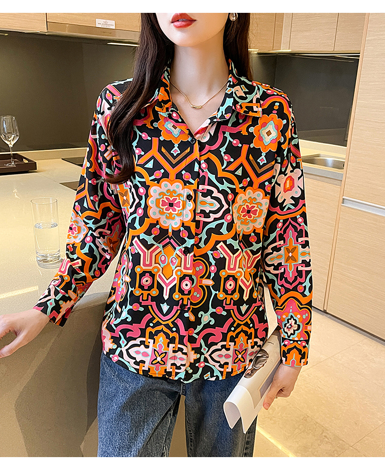 RM27549#新款外贸设计感复古港风印花长袖百搭显瘦气质衬衫