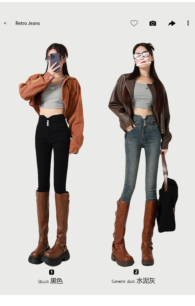 RM27932#加绒加厚高腰修身小脚牛仔裤女紧身弹力显瘦铅笔裤子
