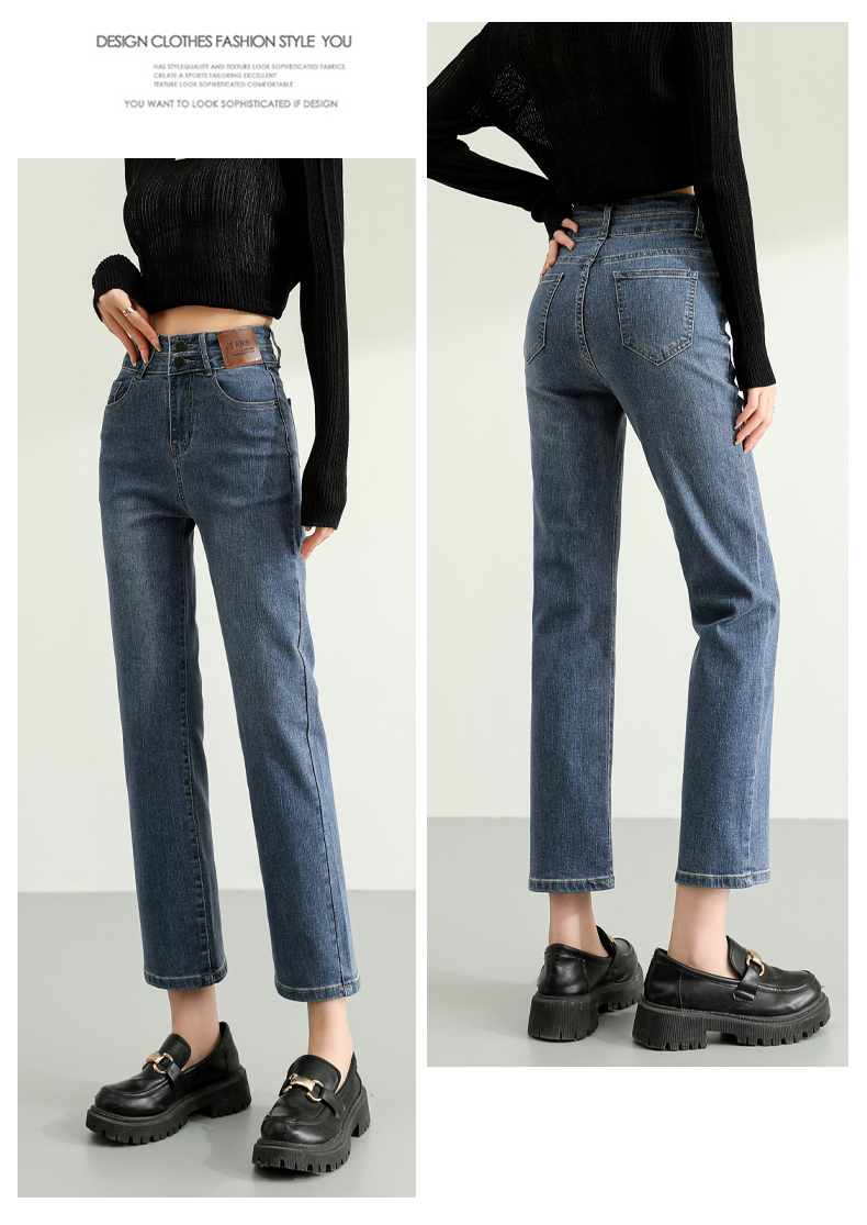 RM27933#爆款加绒贴牌直筒九分牛仔裤女宽松高腰潮ins烟管裤