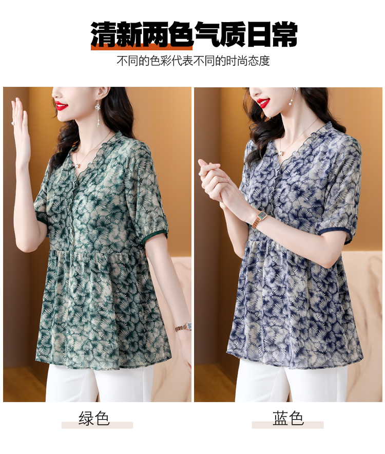 RM29680#夏季新款设计感V领收腰显瘦上衣碎花雪纺衫女中老年
