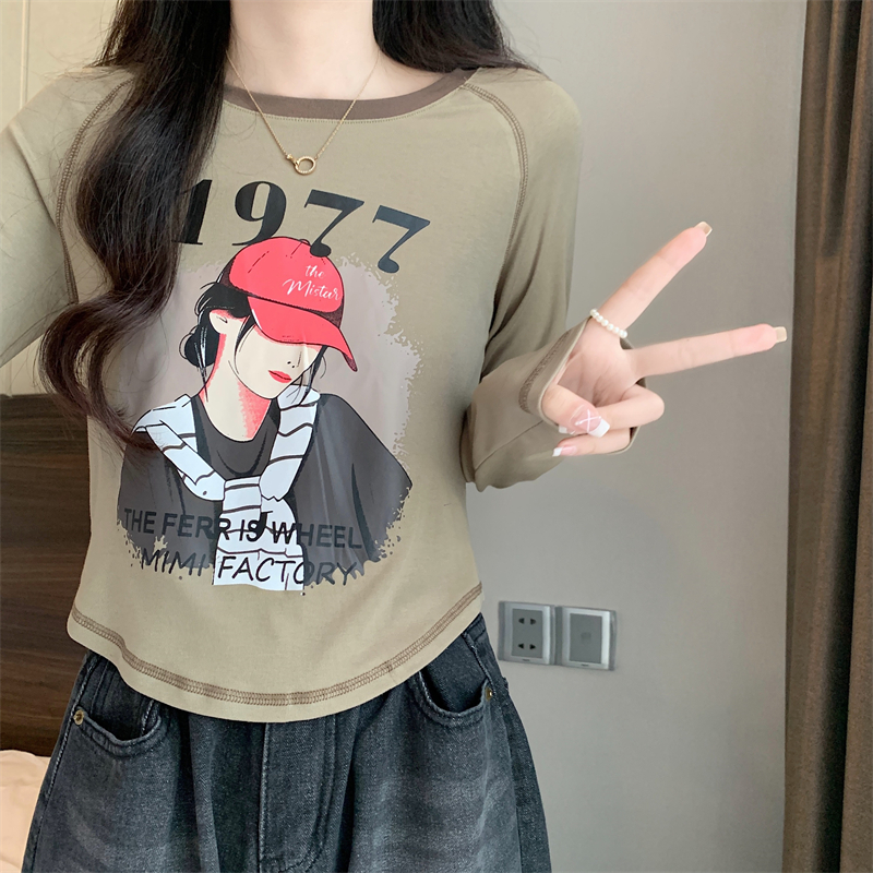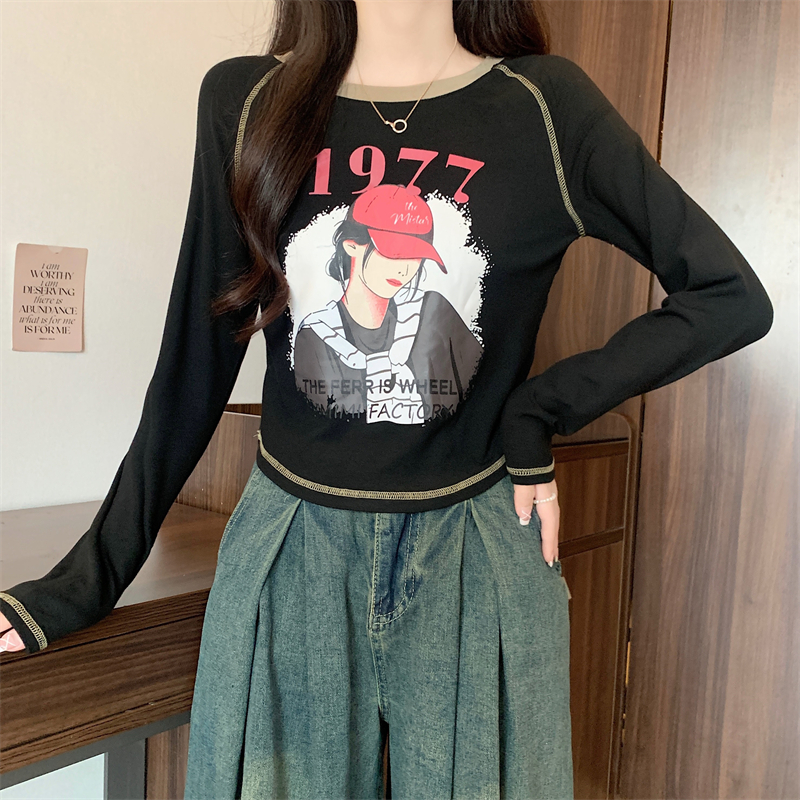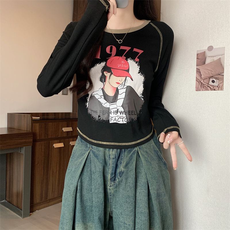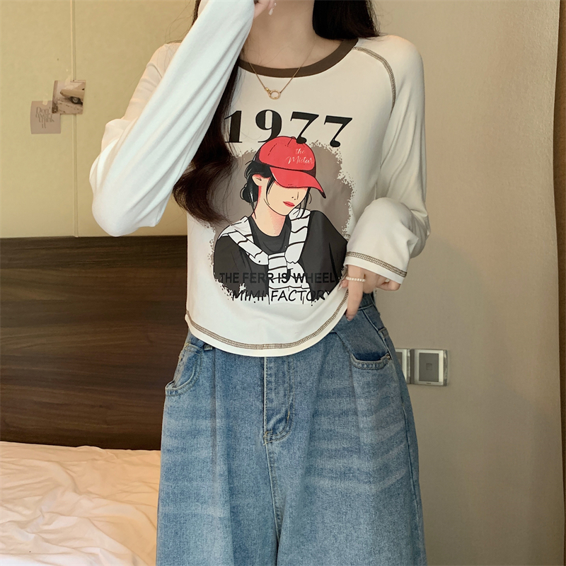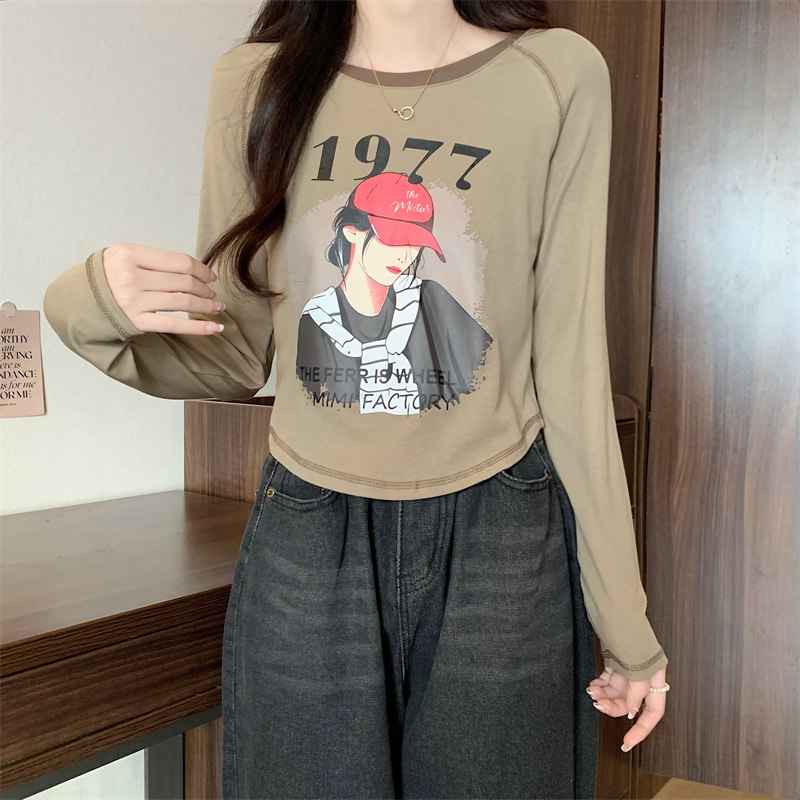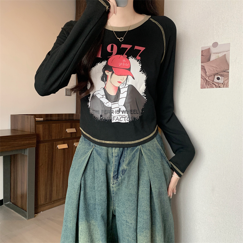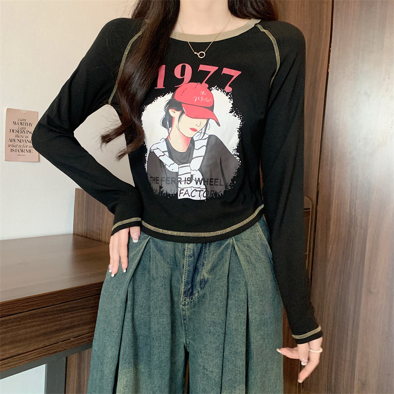 RM29793#新款长袖T恤女美式复古高腰短款辣妹插肩袖百搭上衣