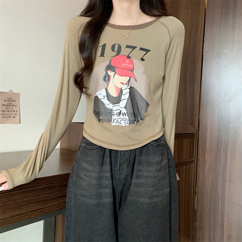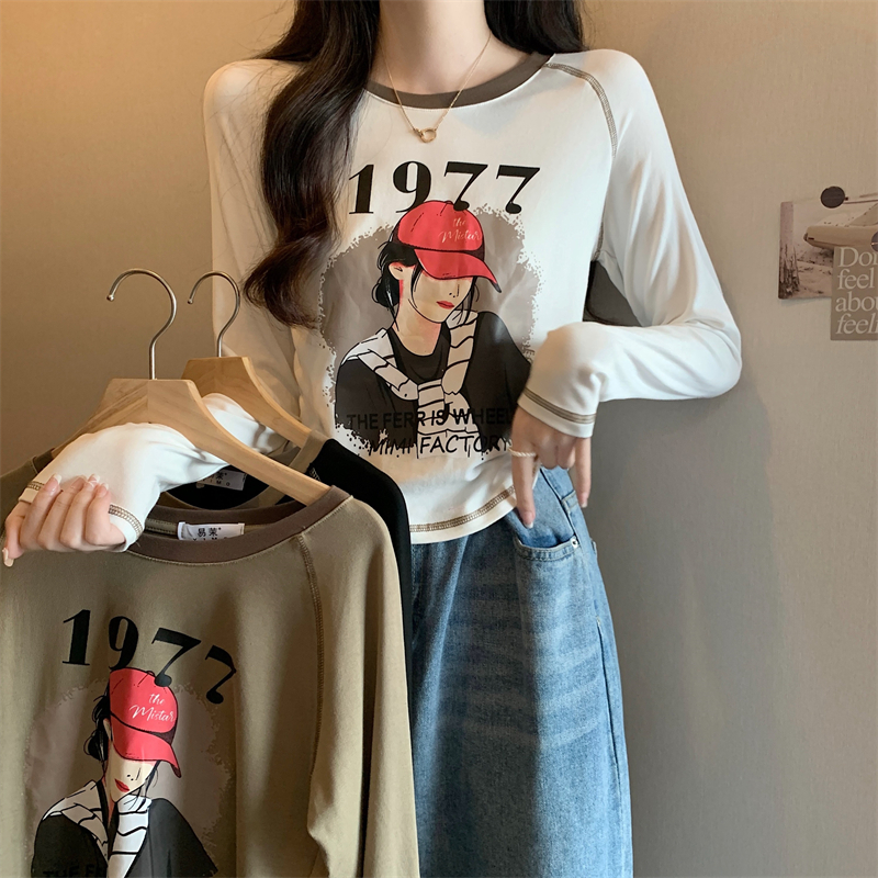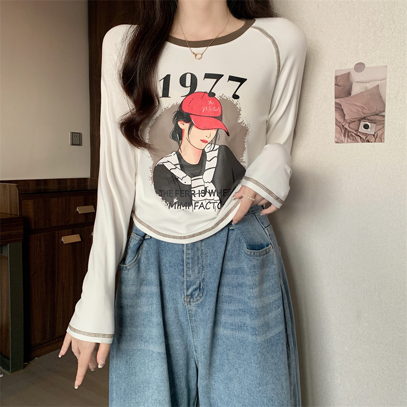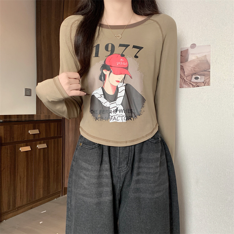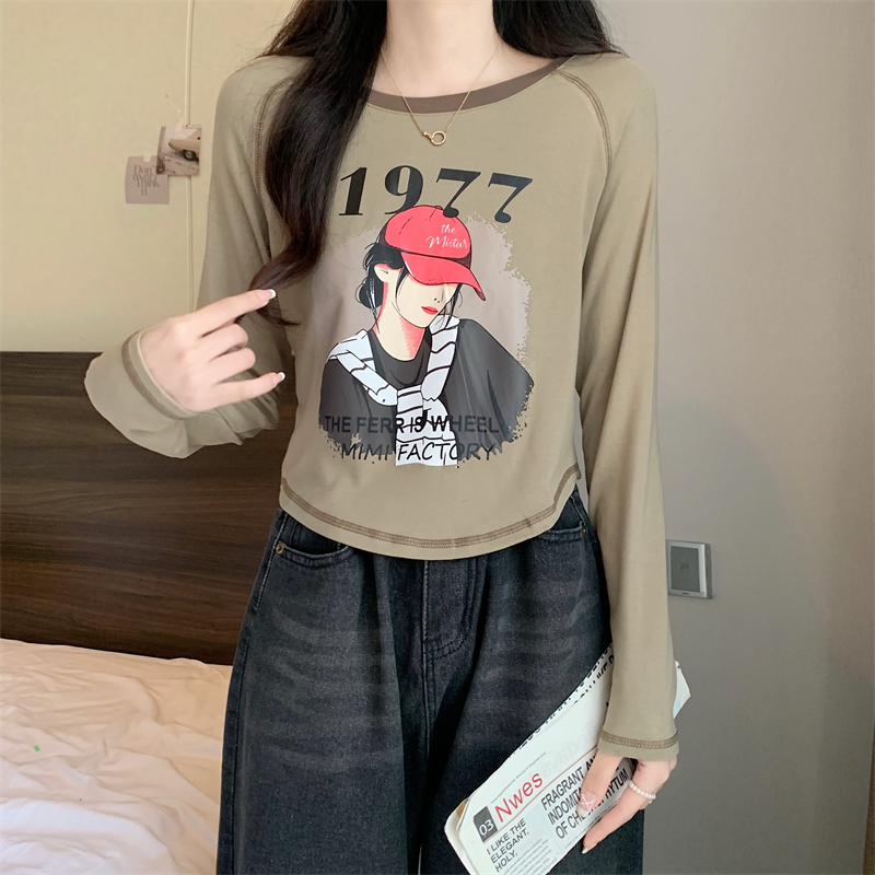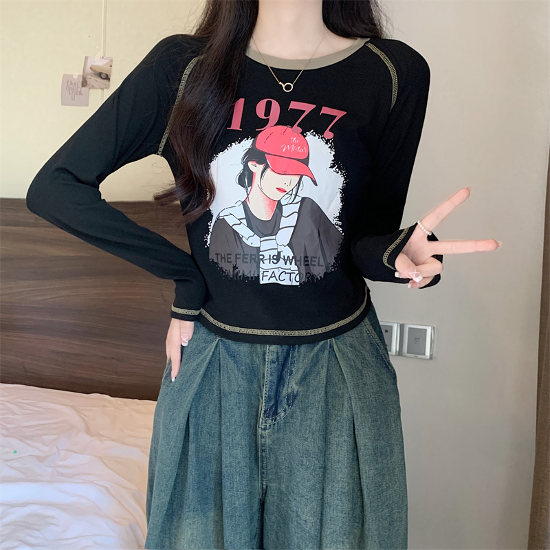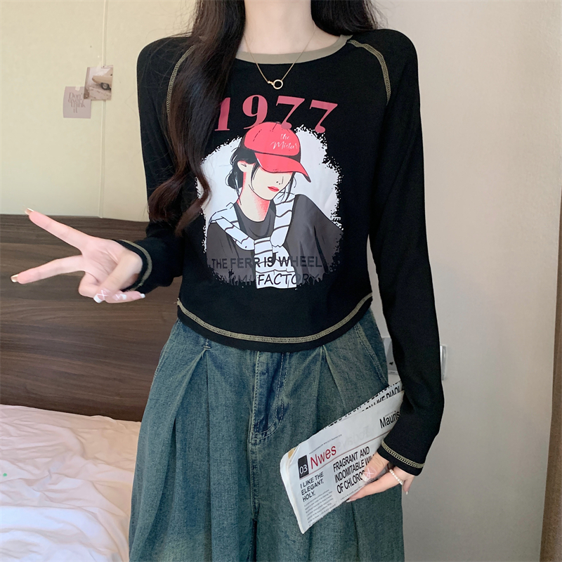 RM29793#新款长袖T恤女美式复古高腰短款辣妹插肩袖百搭上衣