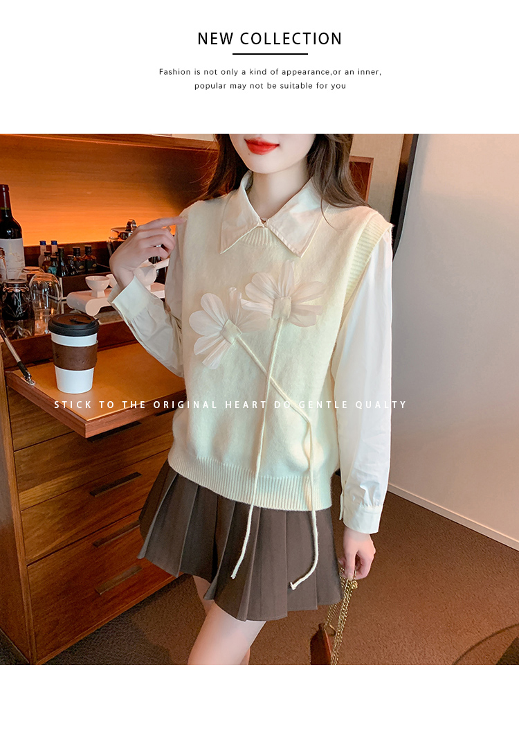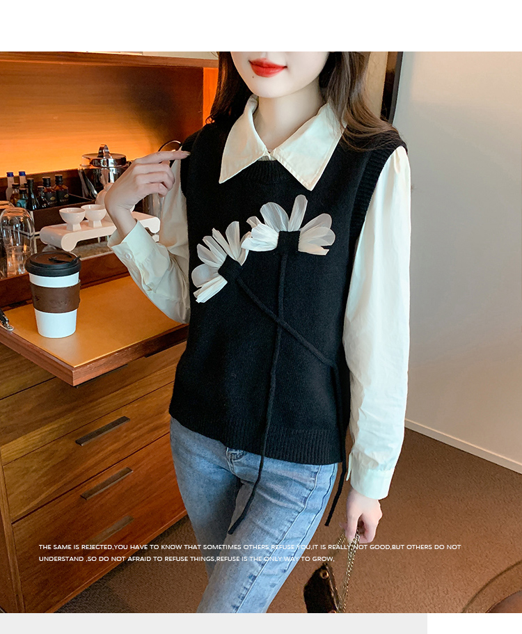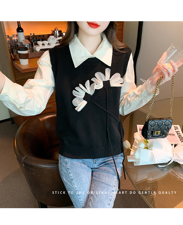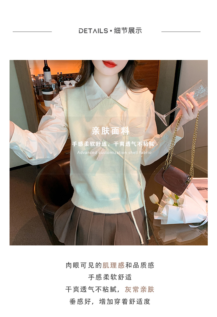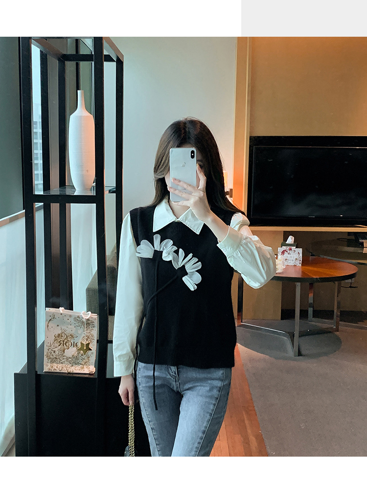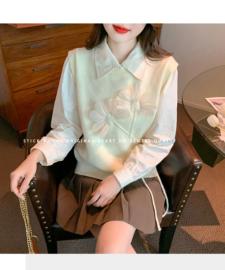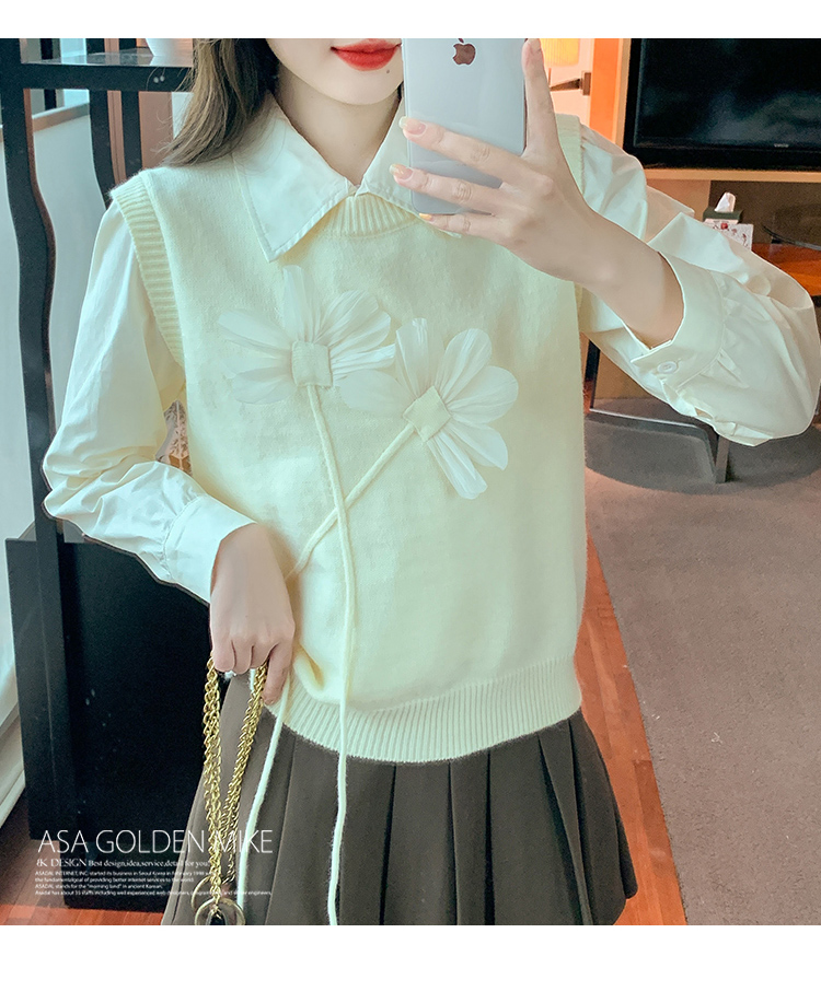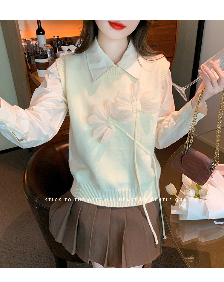 RM29814#设计感小众立体花朵圆领针织马甲背心女上衣套装毛衣两件套