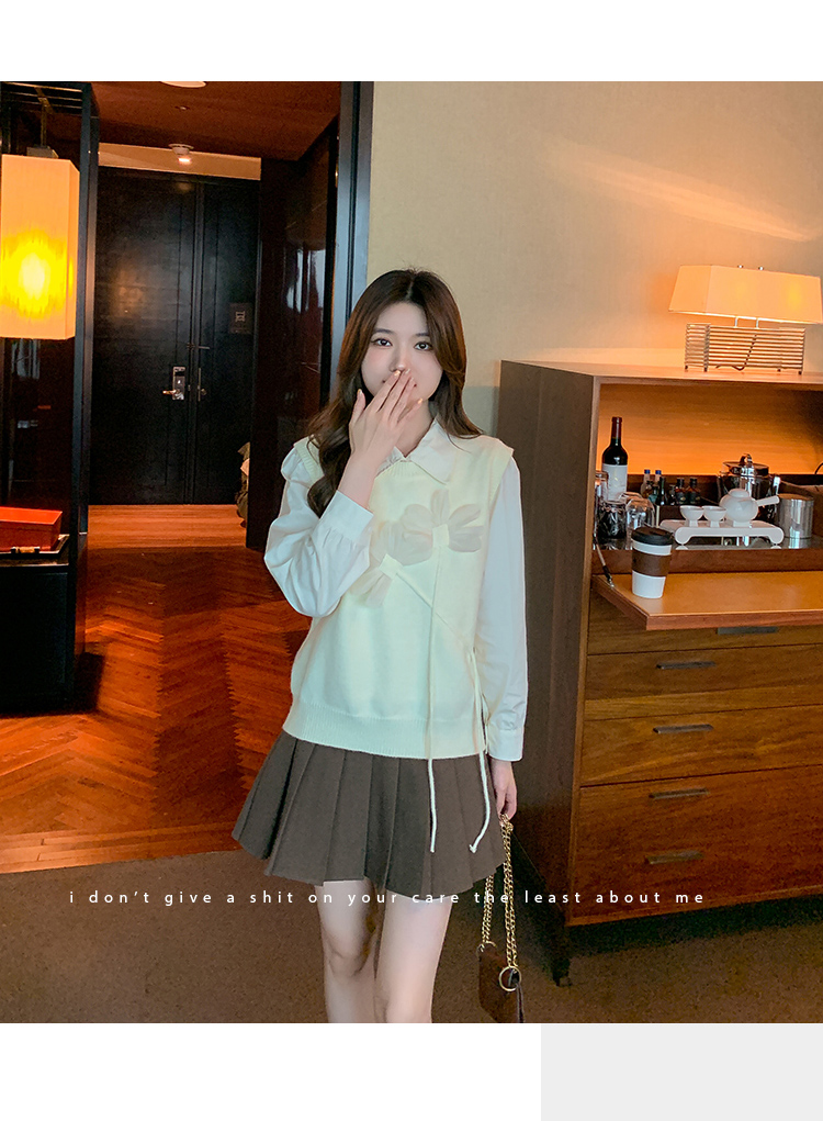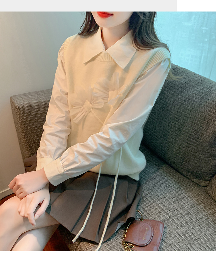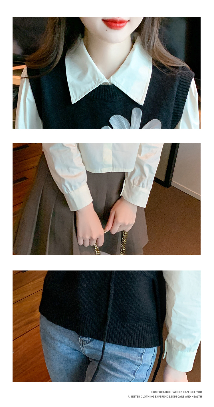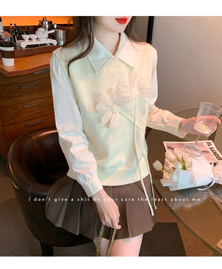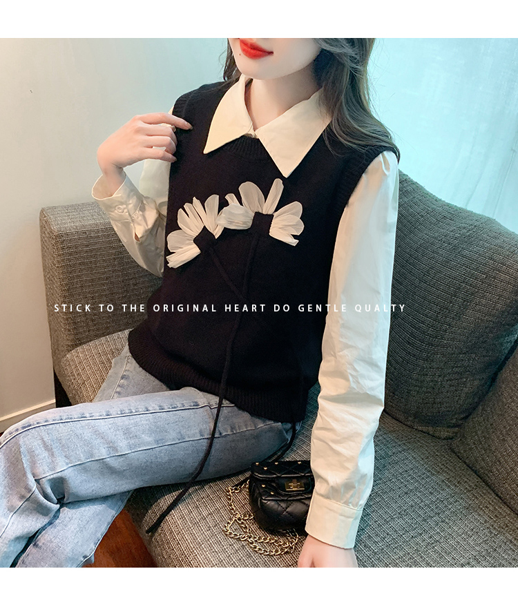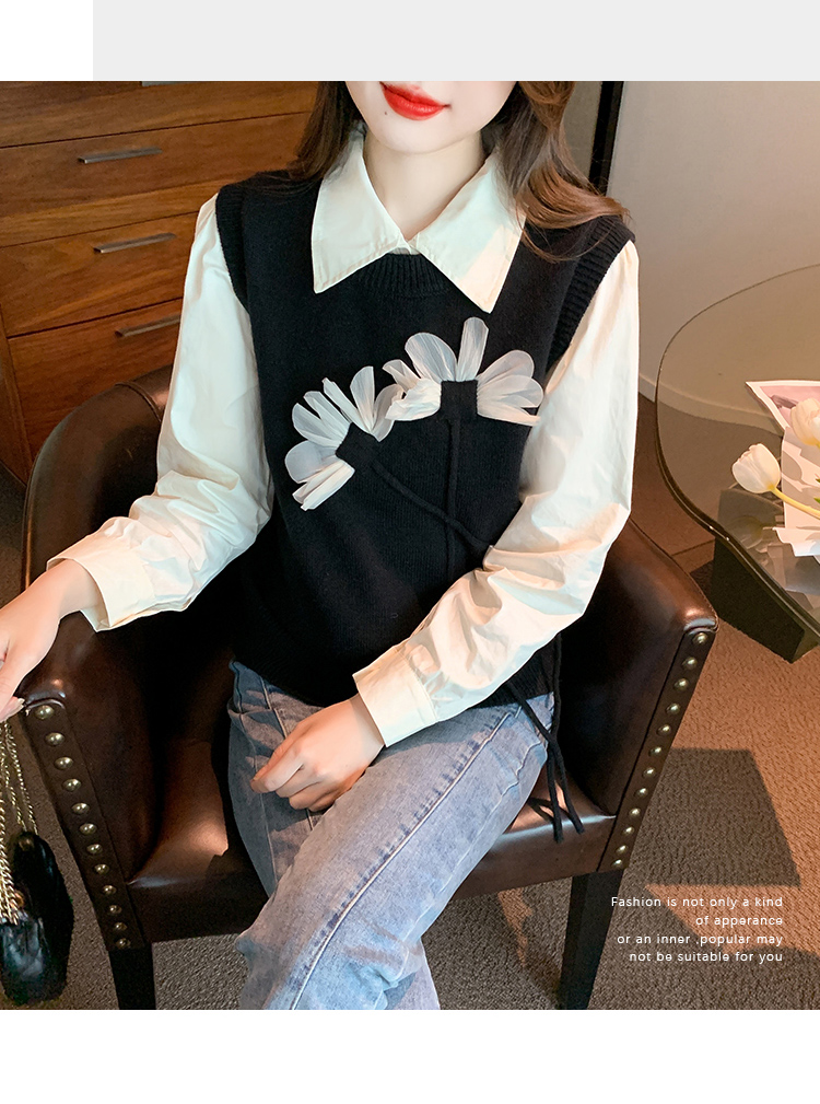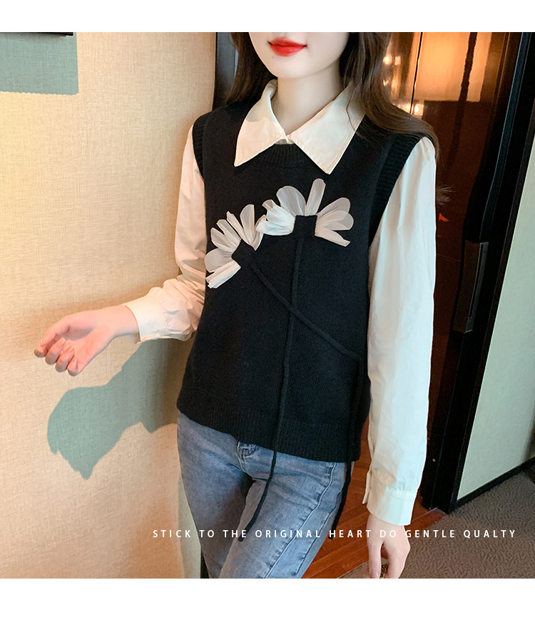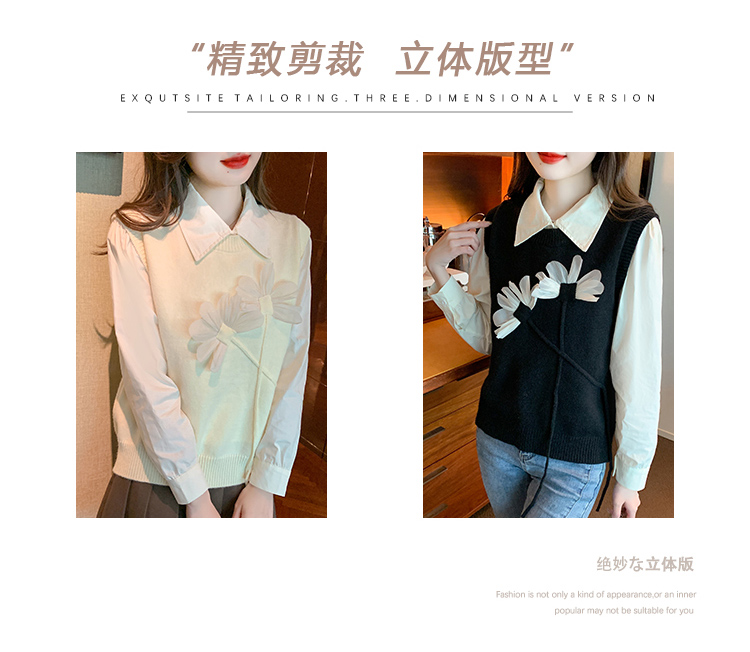RM29814#设计感小众立体花朵圆领针织马甲背心女上衣套装毛衣两件套