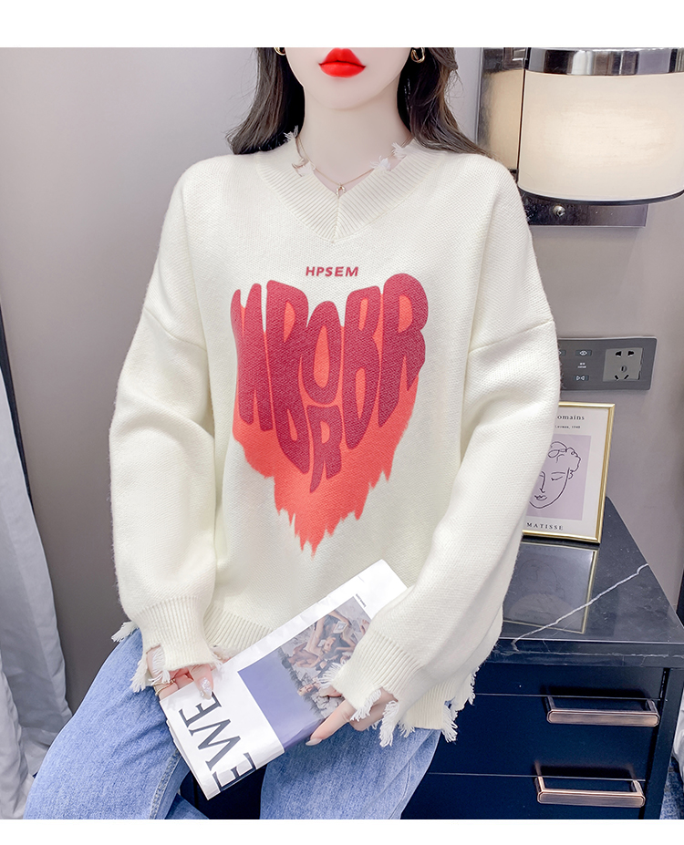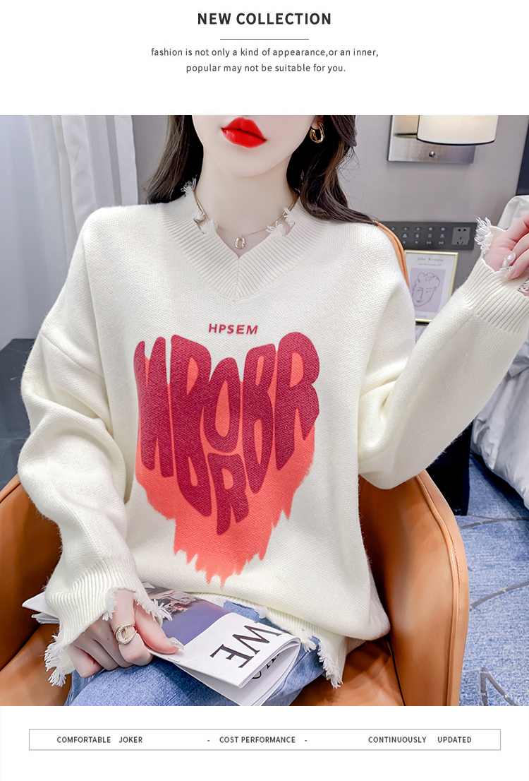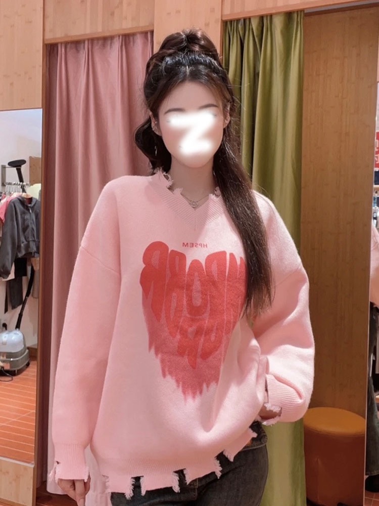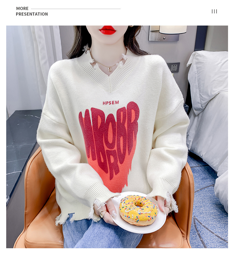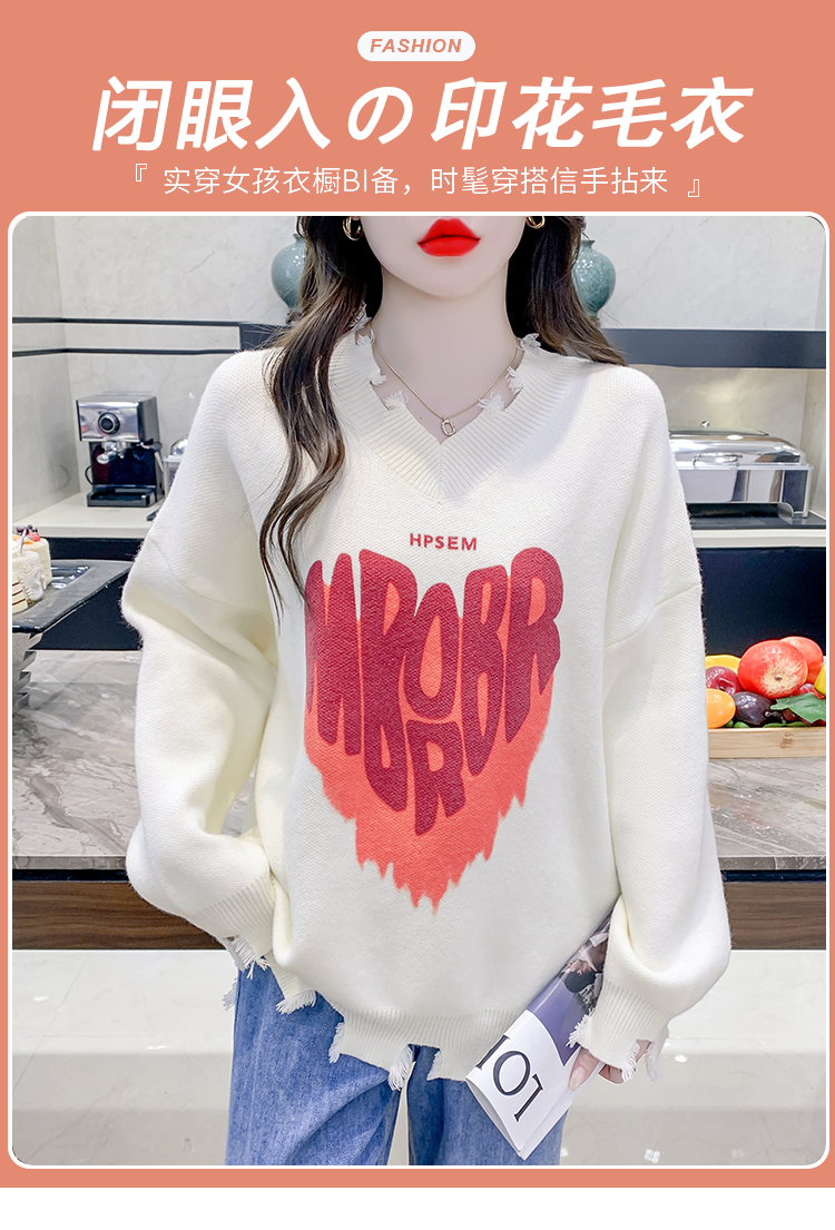 RM29822#新款韩版时髦个性印花宽松毛织上衣女