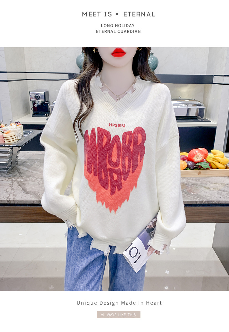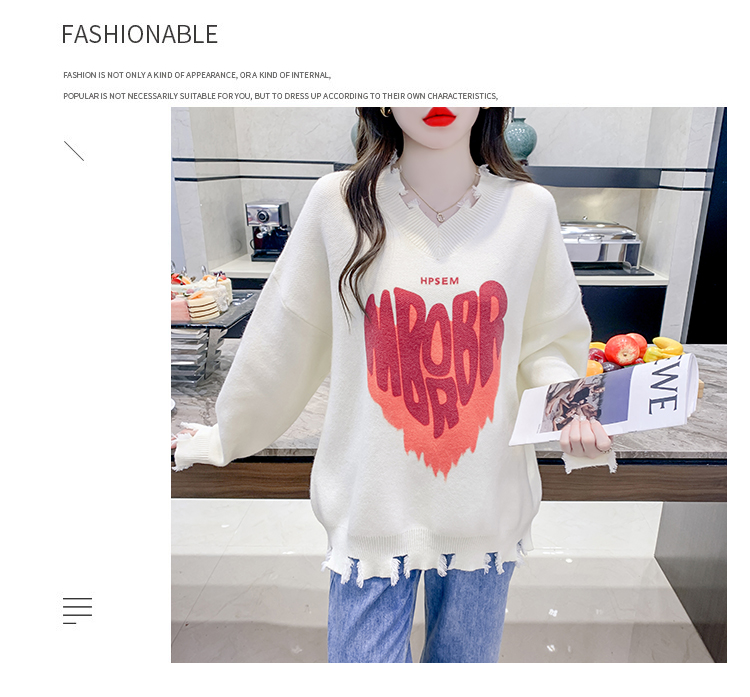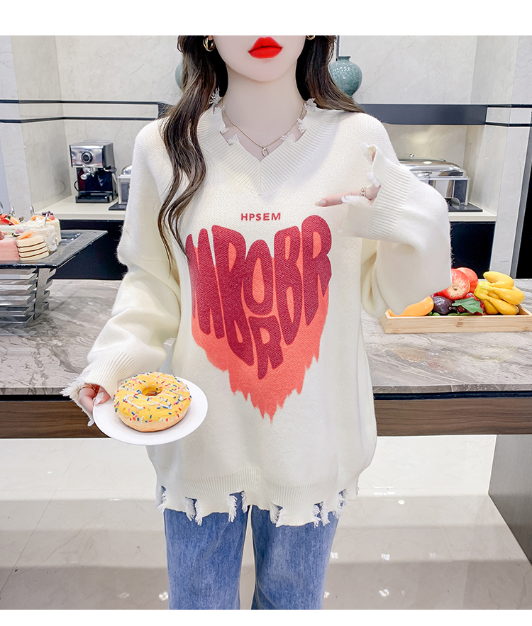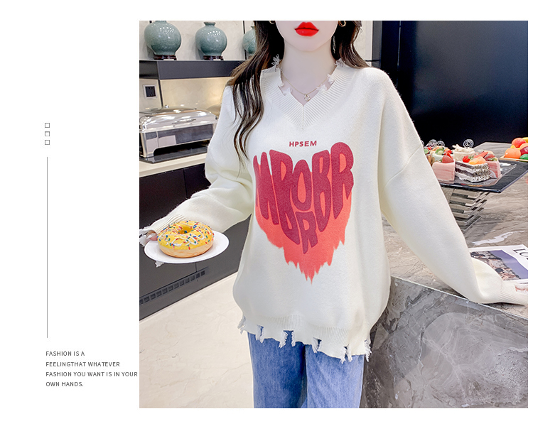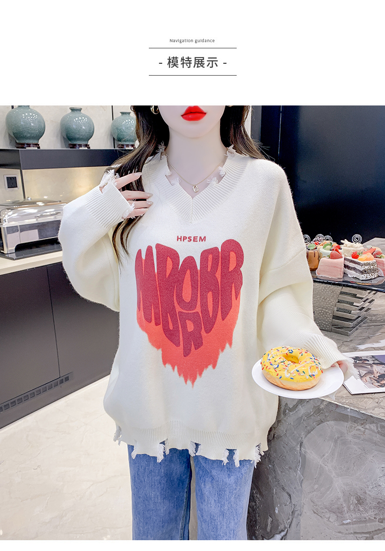 RM29822#新款韩版时髦个性印花宽松毛织上衣女