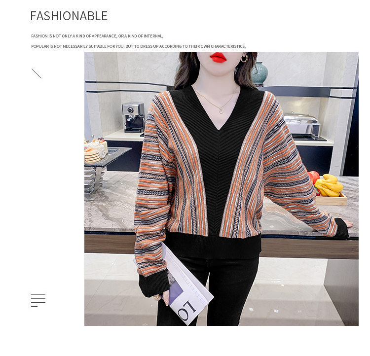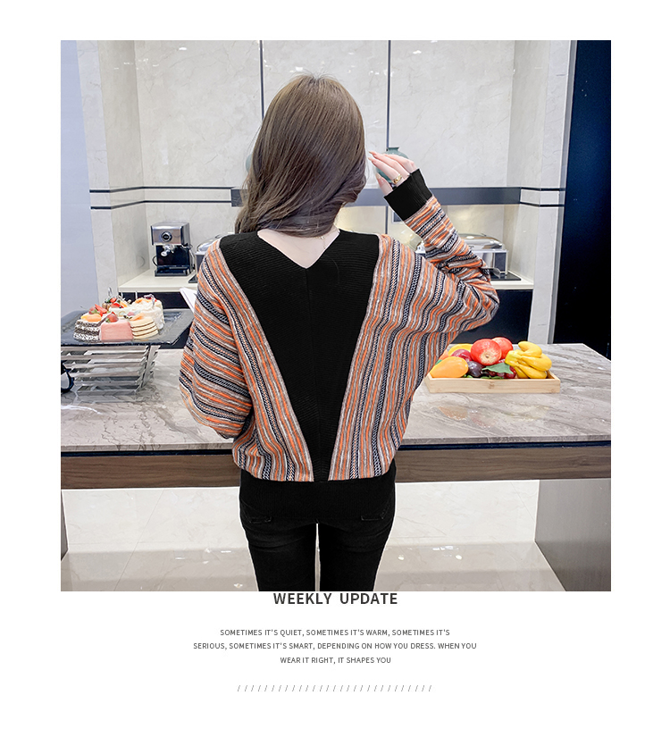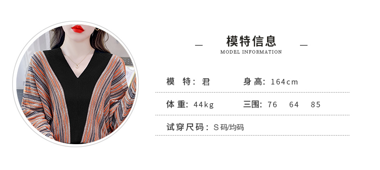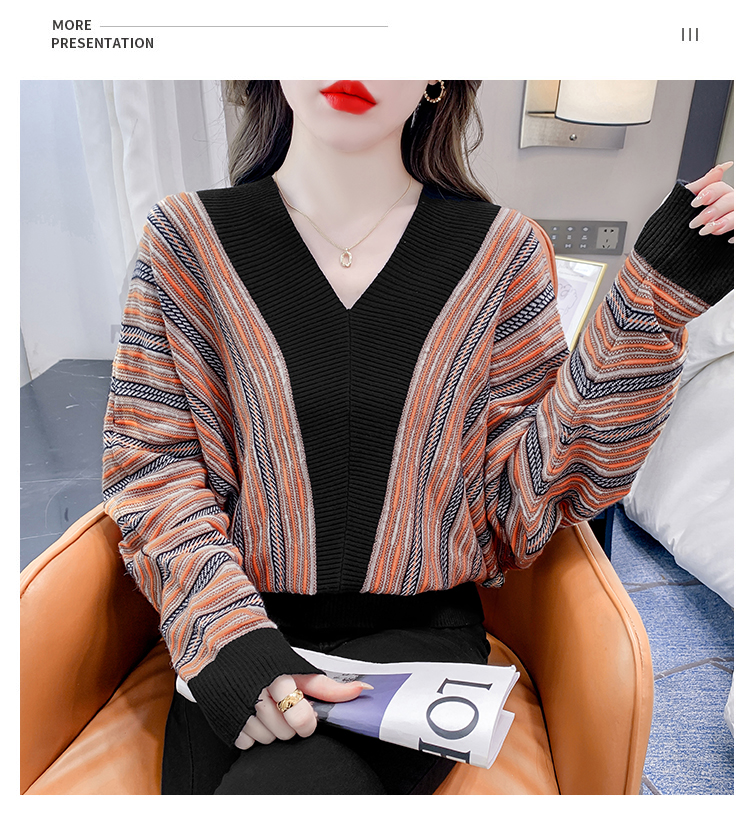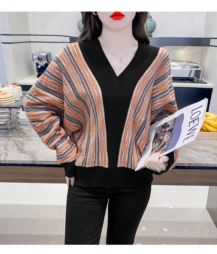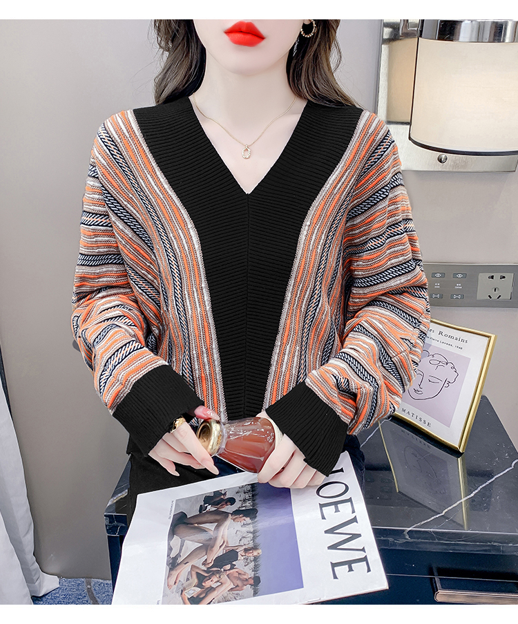 RM29825#新款V领针织衫蝙蝠袖撞色慵懒风毛衣打底衫女