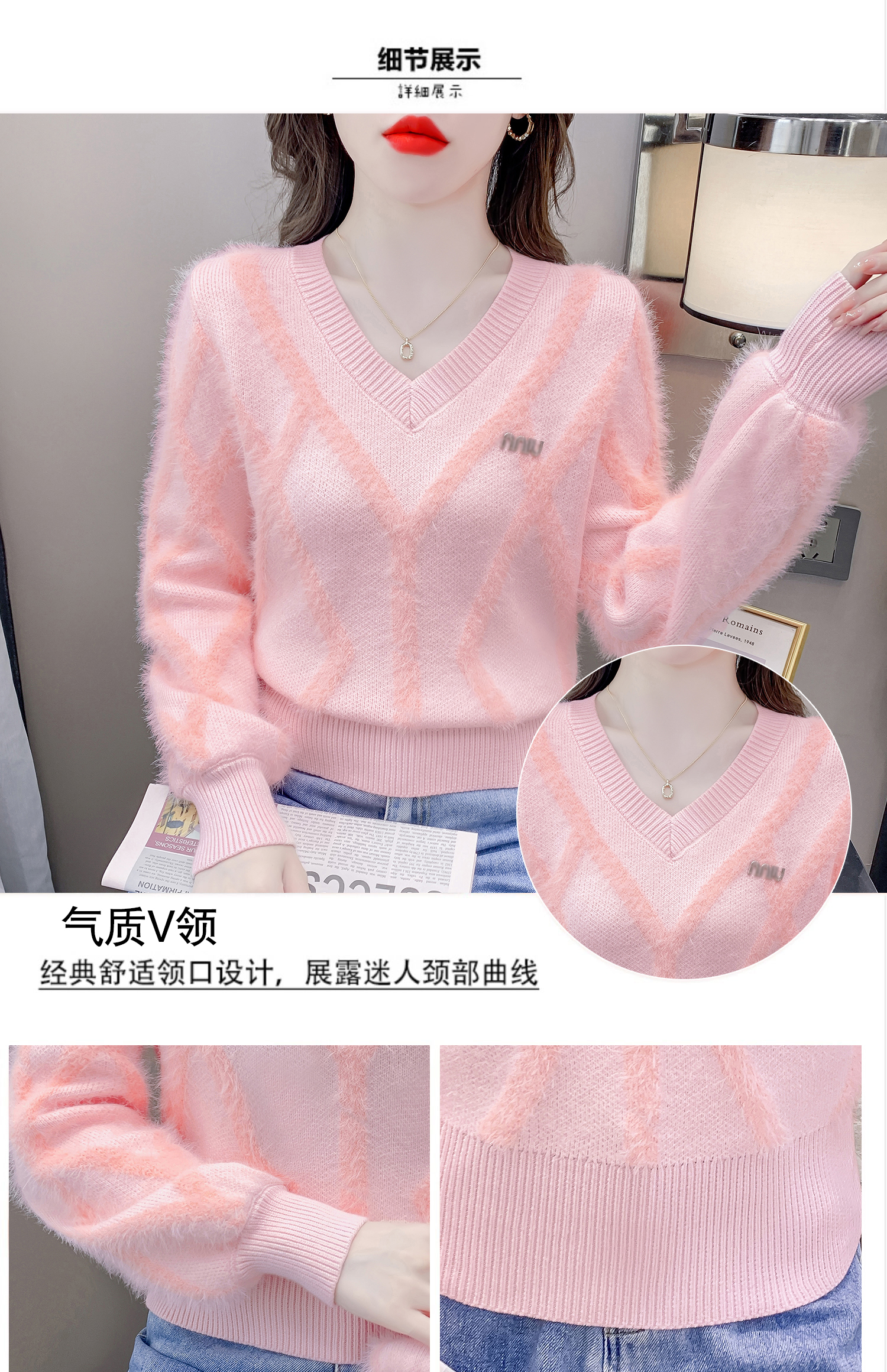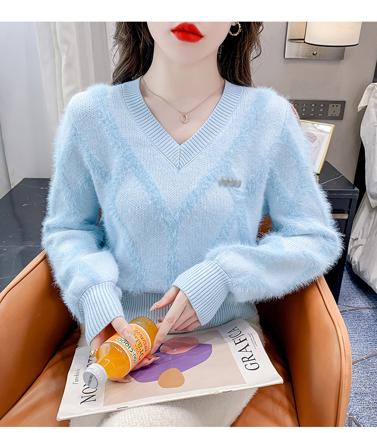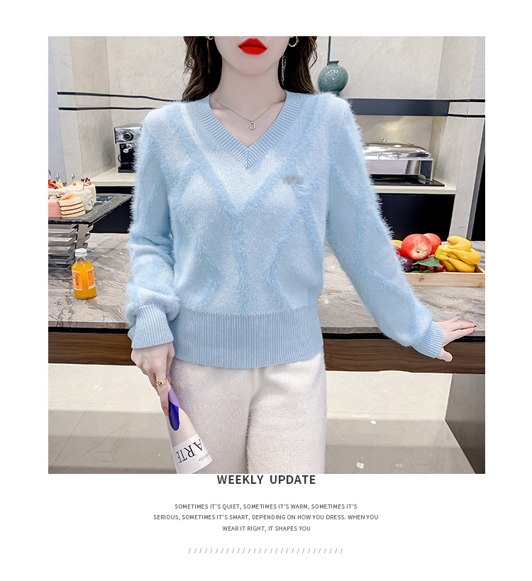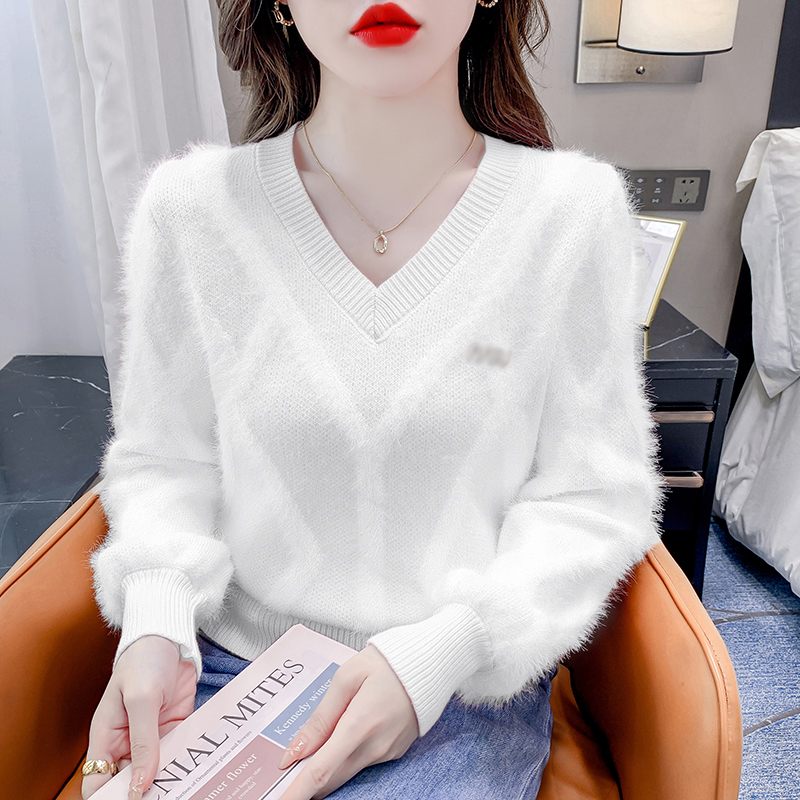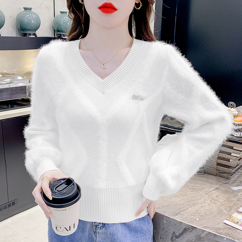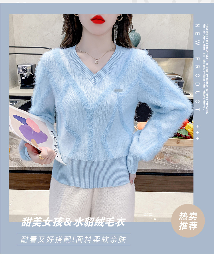 RM29826#冬季新款时尚v领水貂毛毛织打底衫上衣女