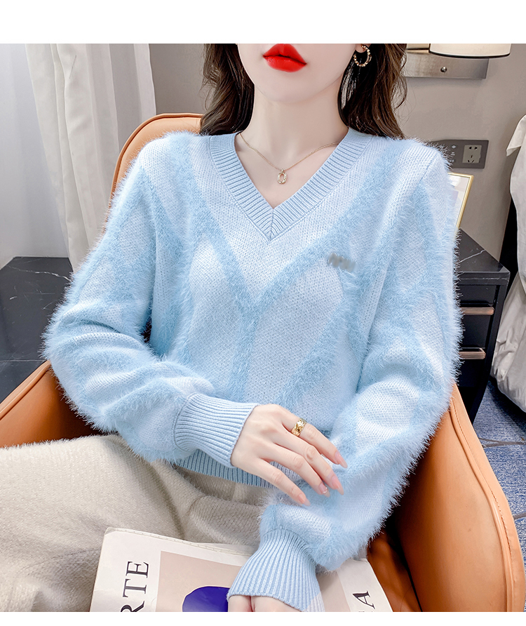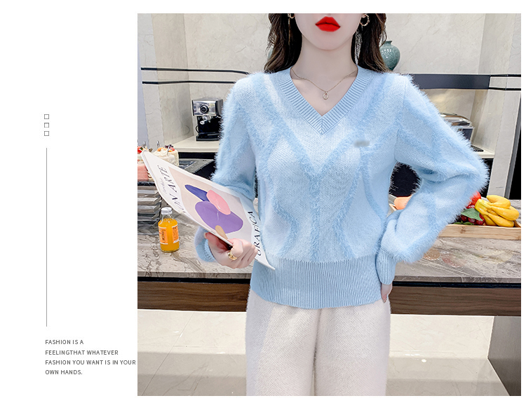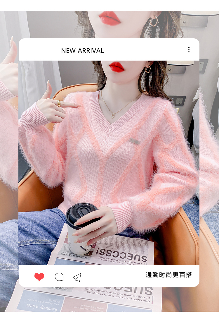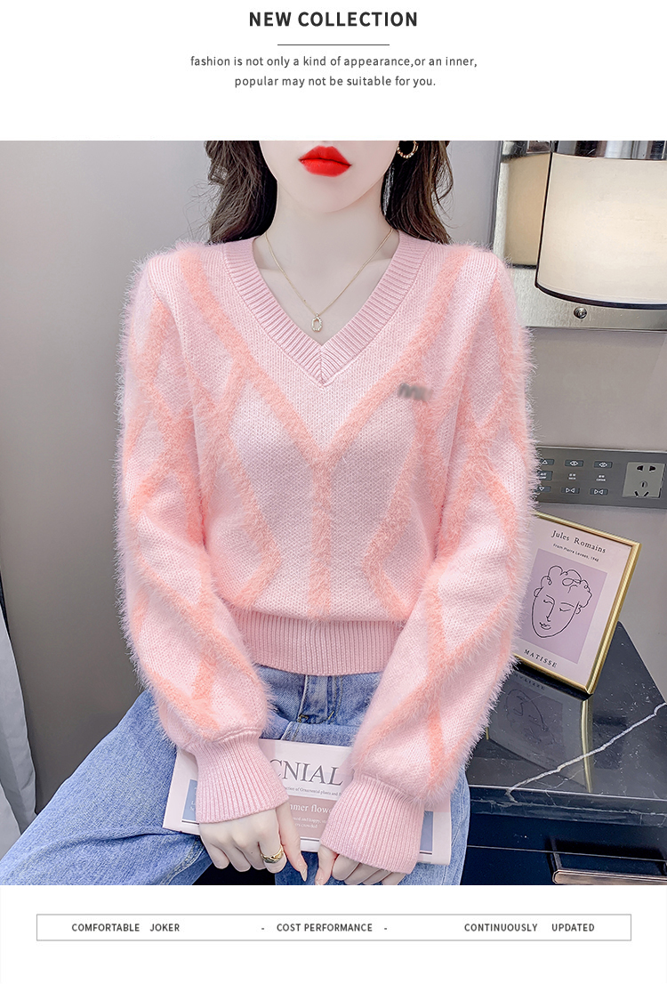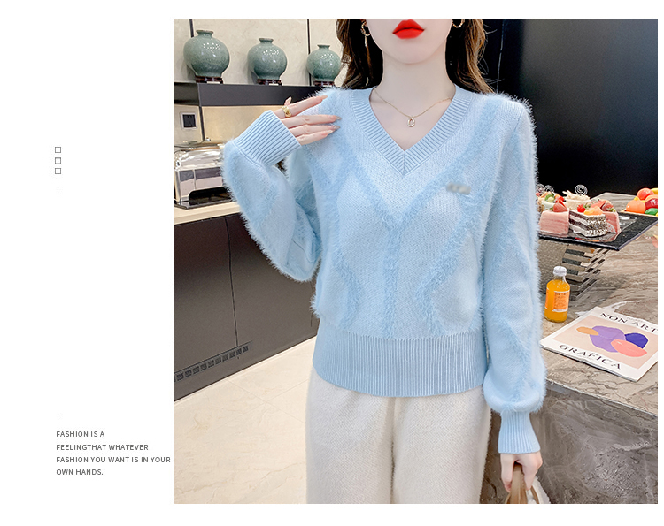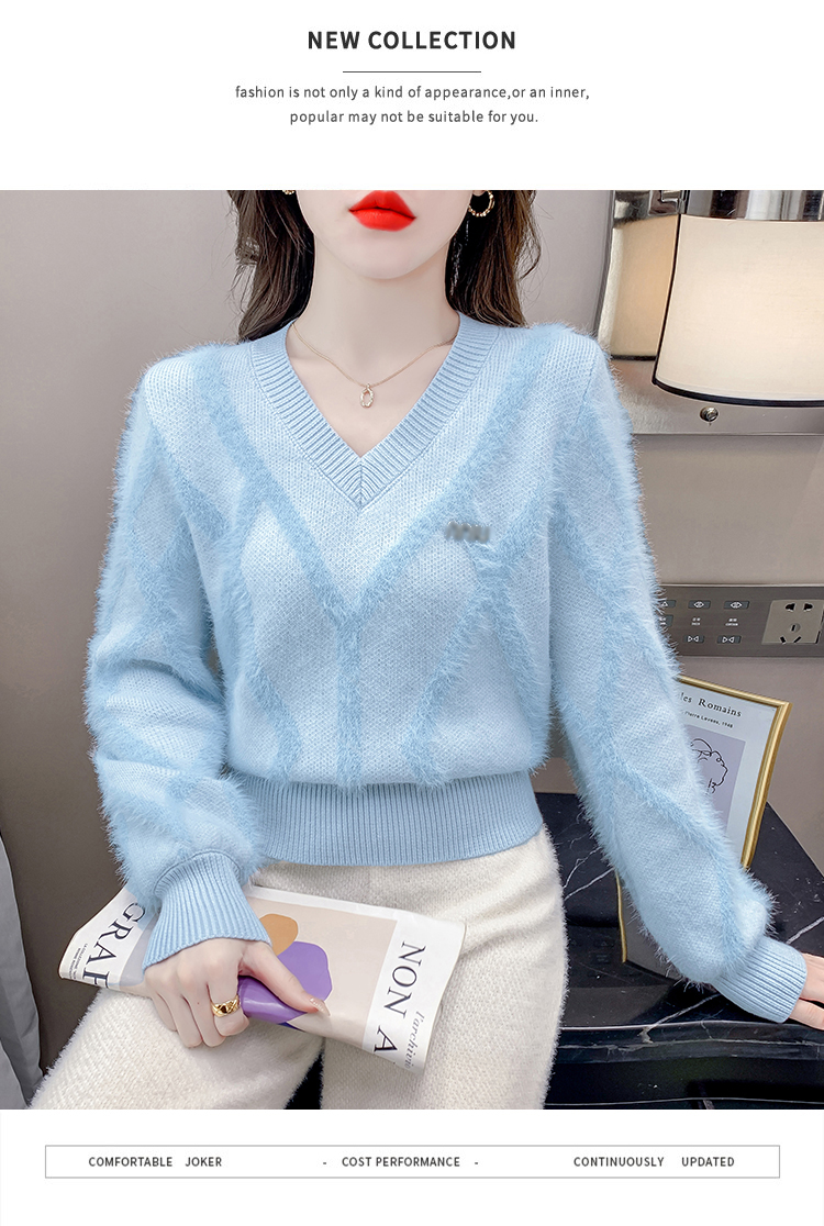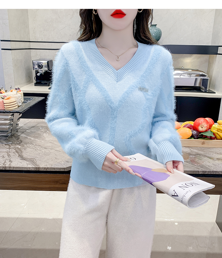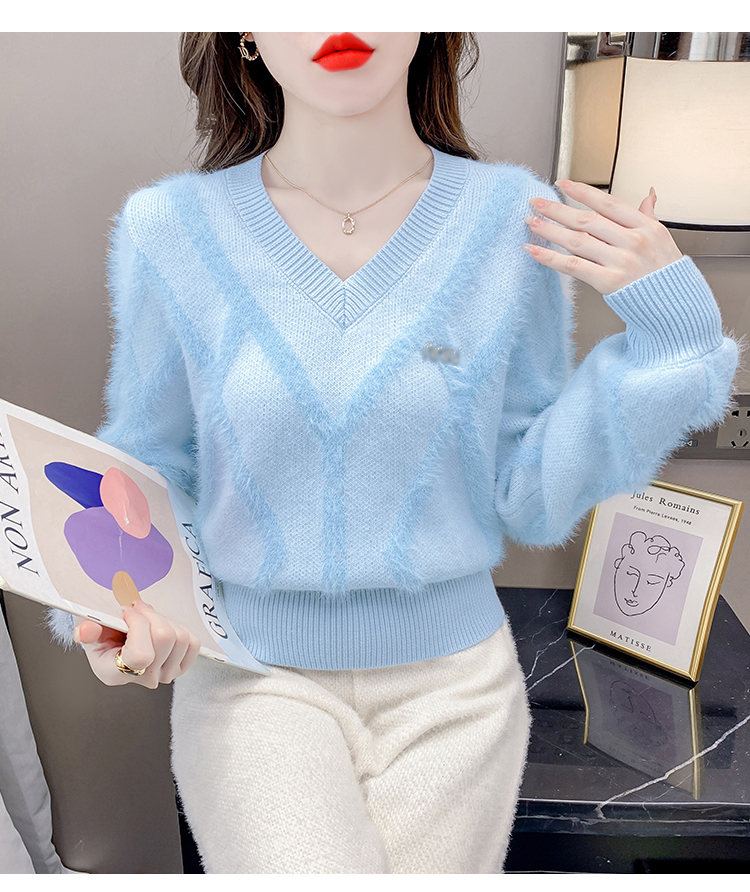 RM29826#冬季新款时尚v领水貂毛毛织打底衫上衣女