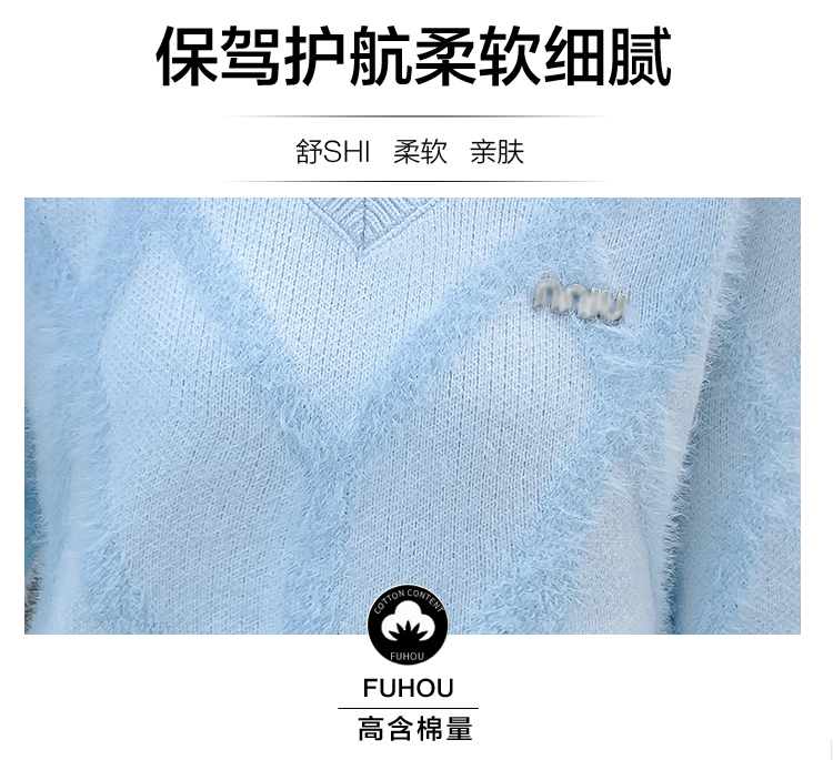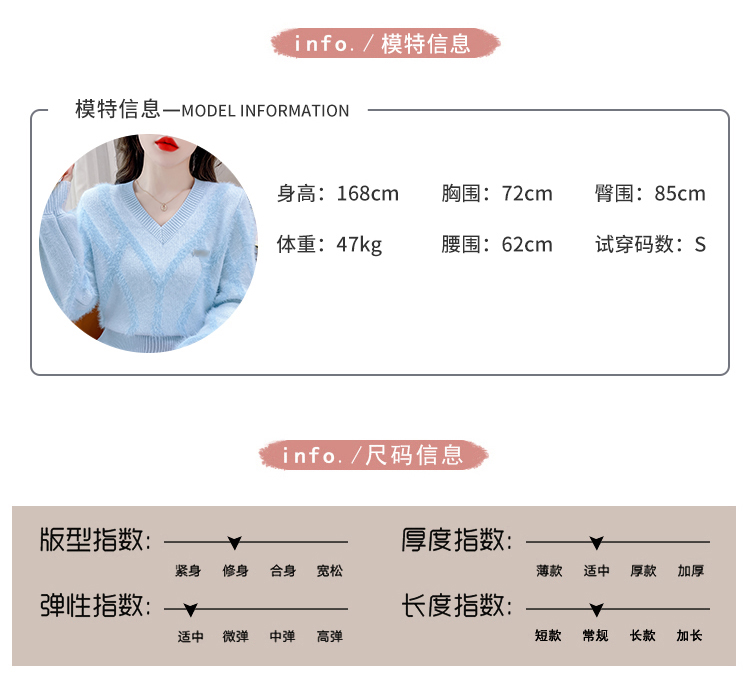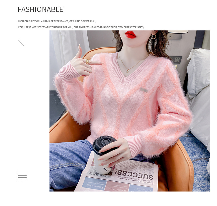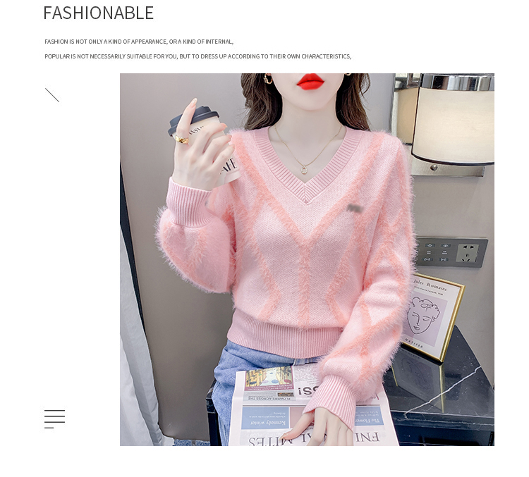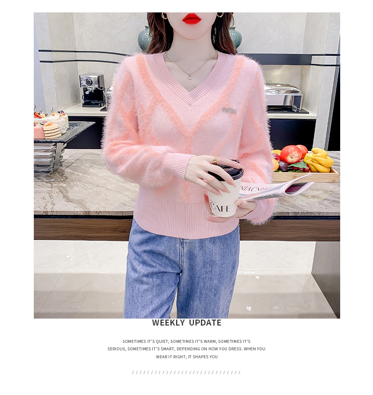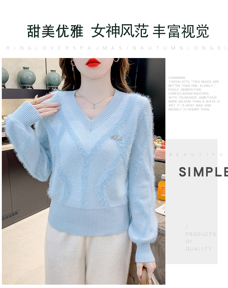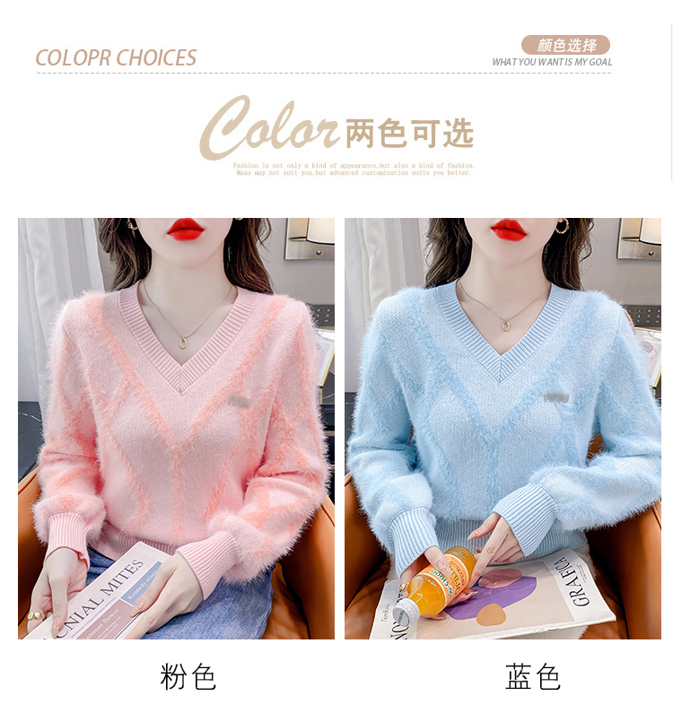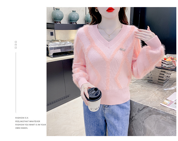 RM29826#冬季新款时尚v领水貂毛毛织打底衫上衣女