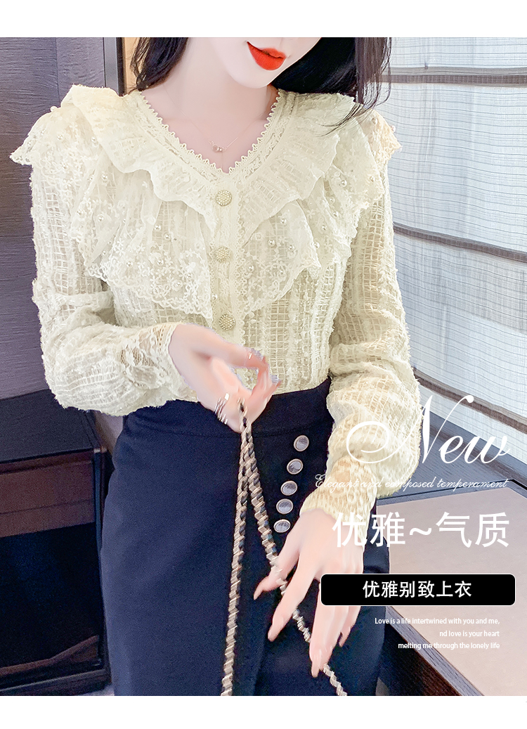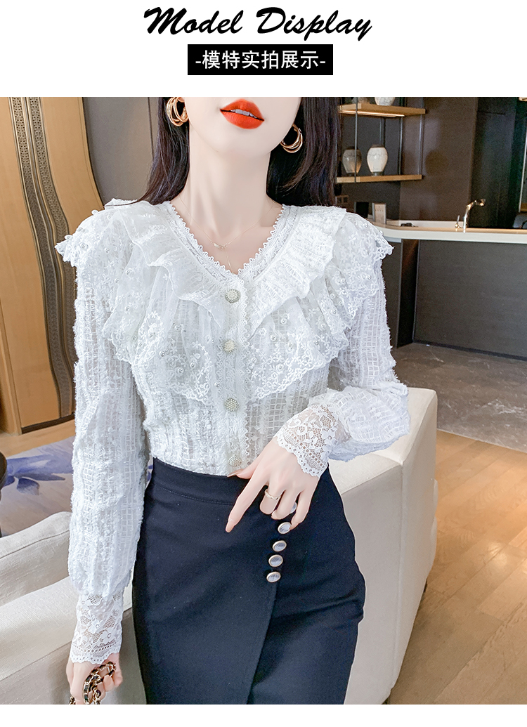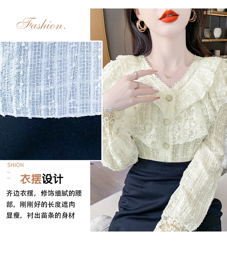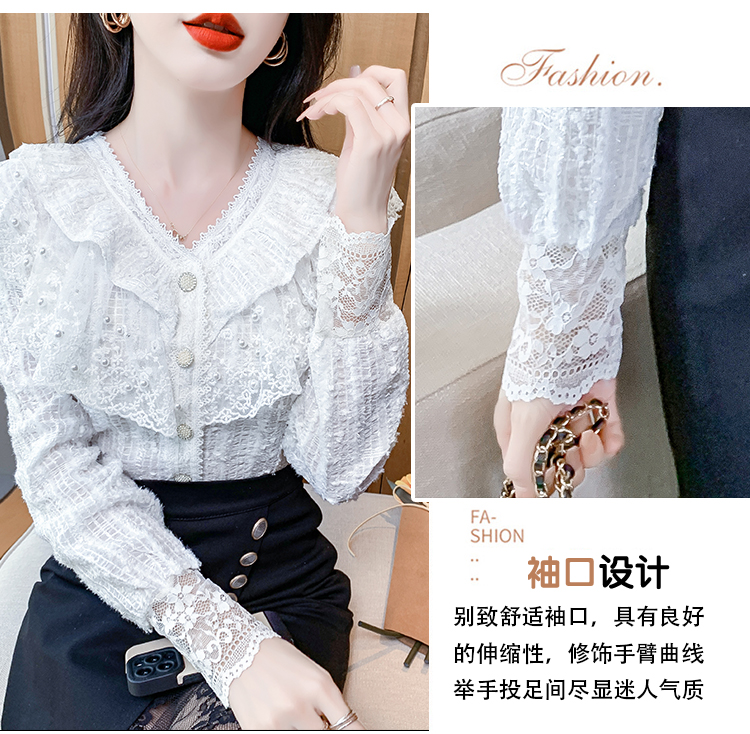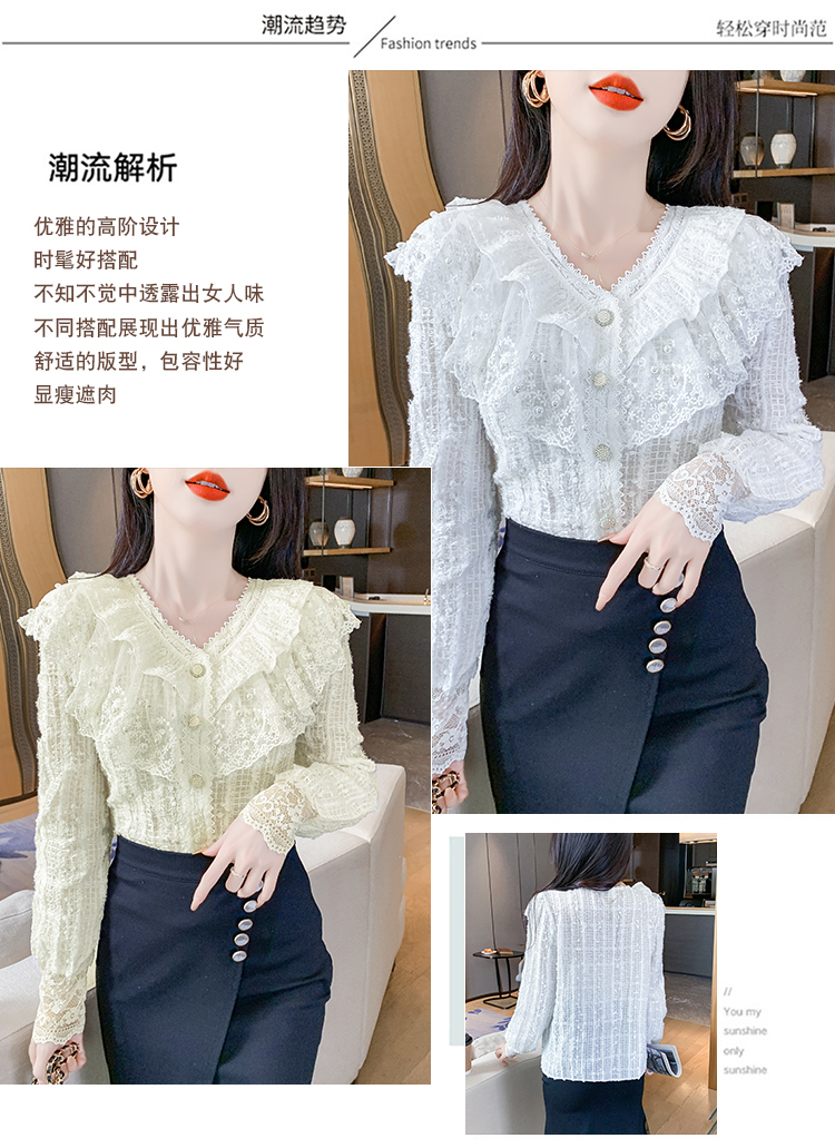 RM29841#长袖蕾丝衫甜美洋气单排扣V领休闲显瘦甜美女装上衣春秋装
