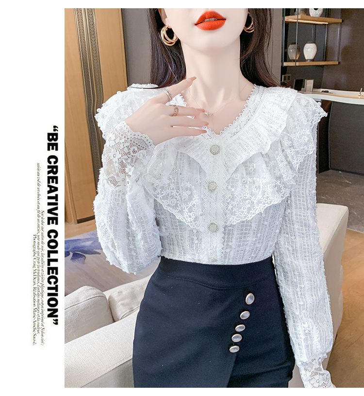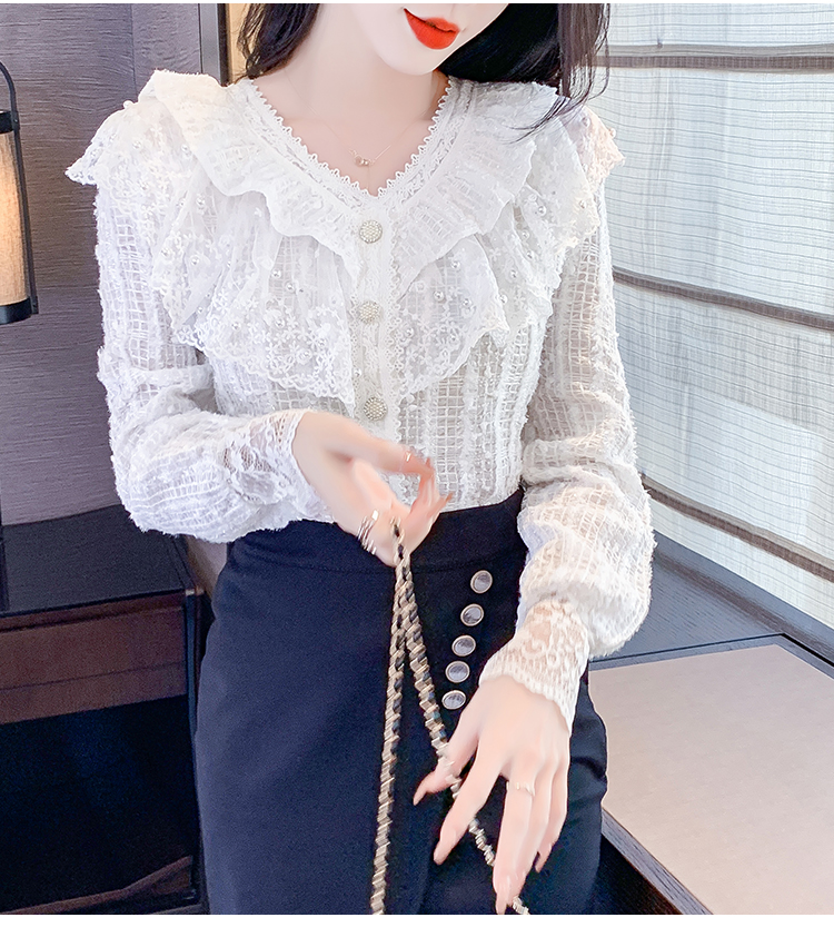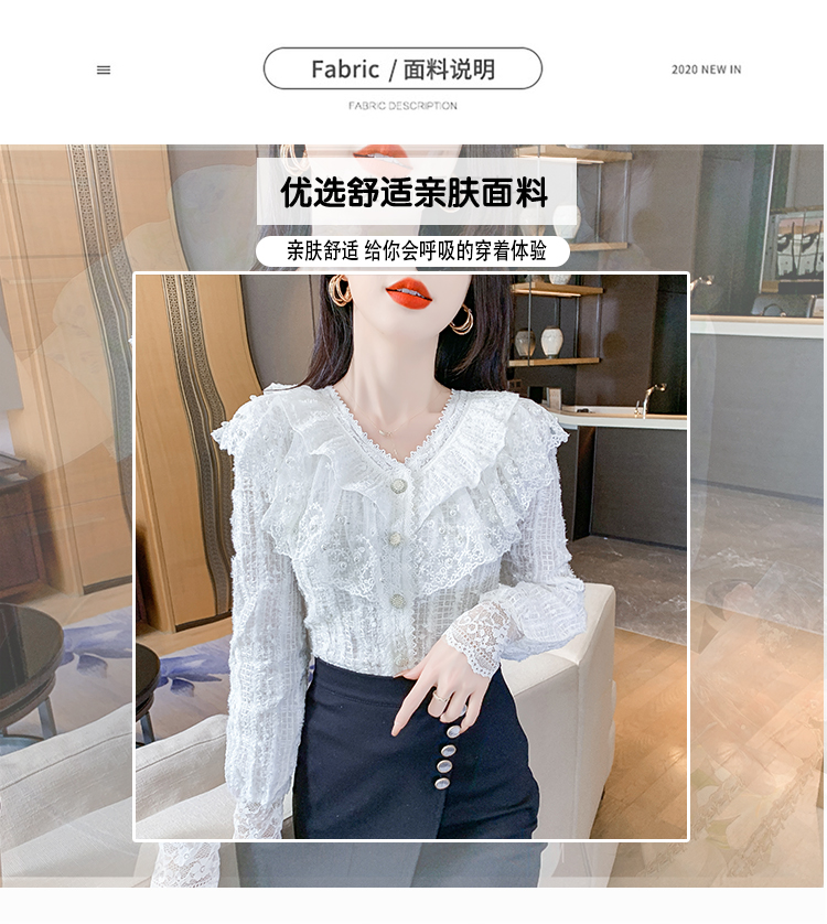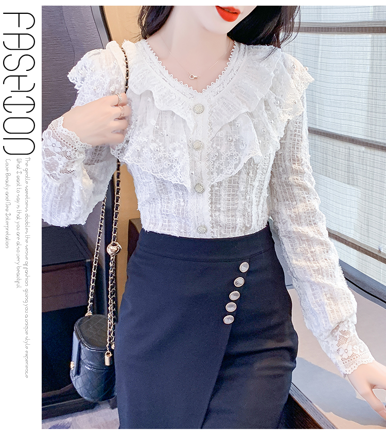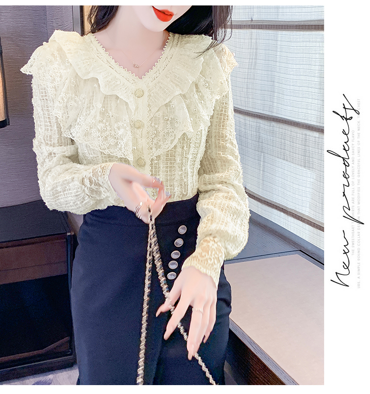 RM29841#长袖蕾丝衫甜美洋气单排扣V领休闲显瘦甜美女装上衣春秋装