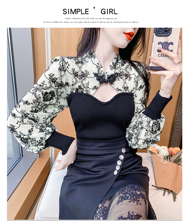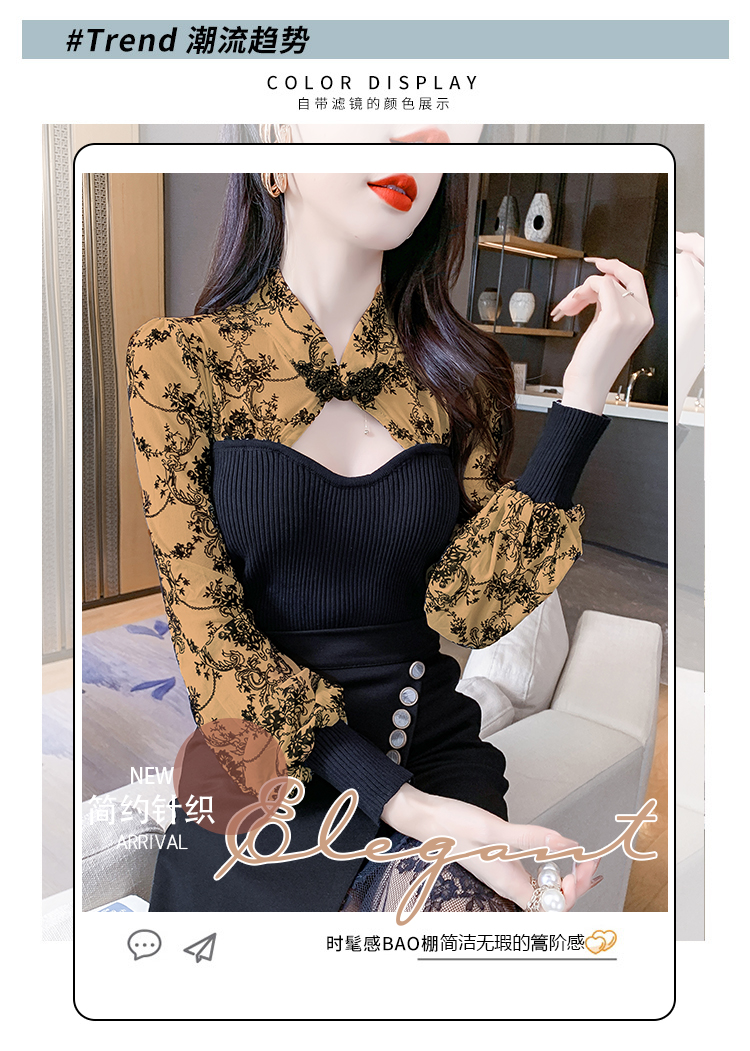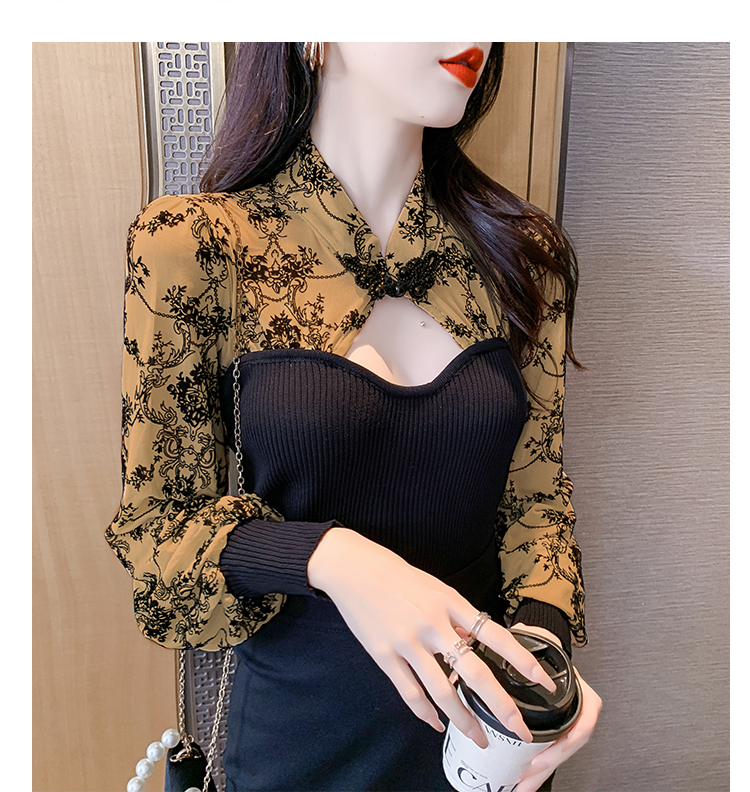 RM29842#新款韩版百搭植绒拼接长袖打底衫女内搭高级感