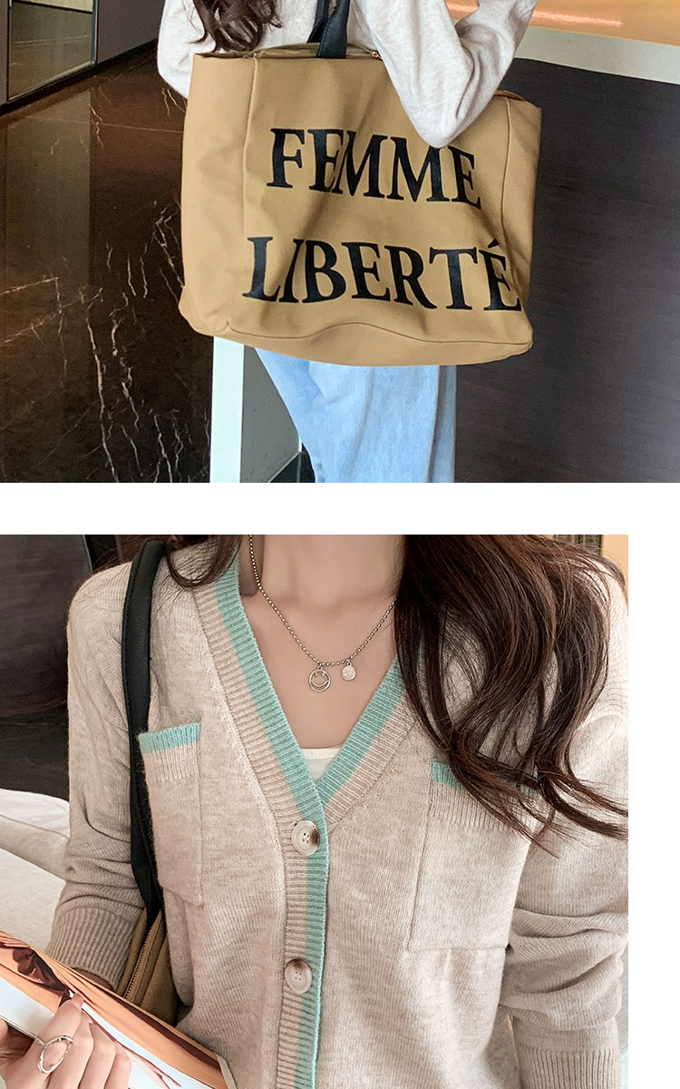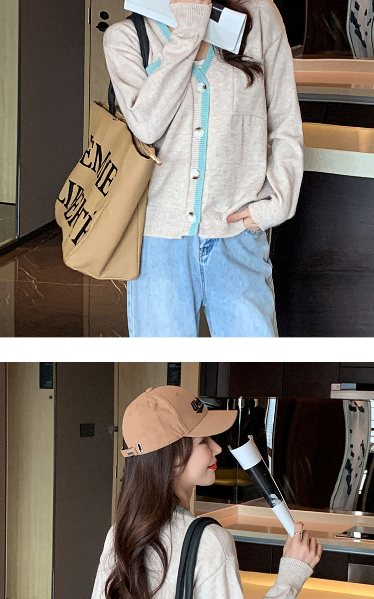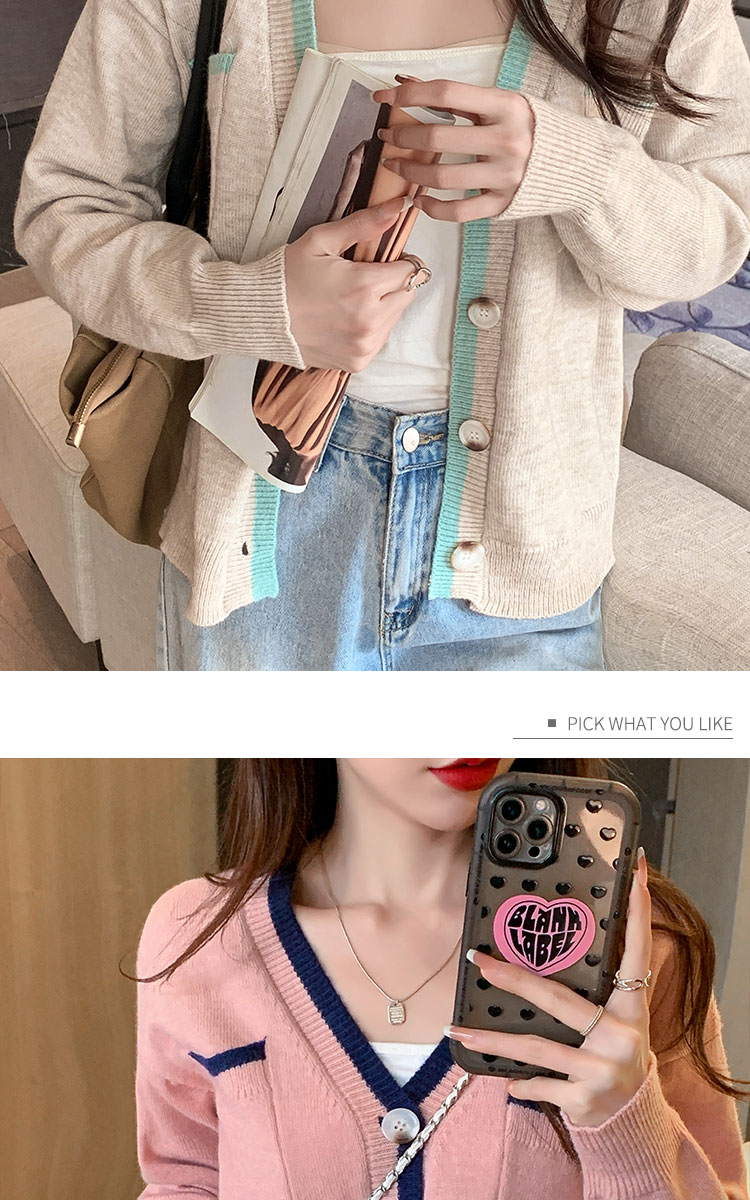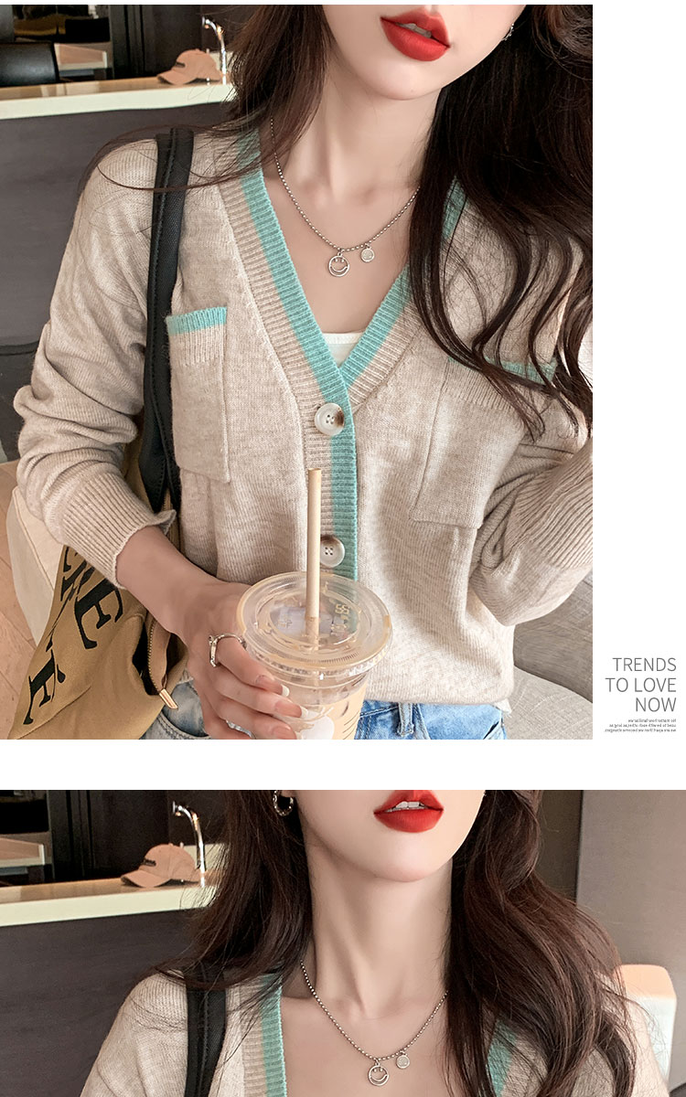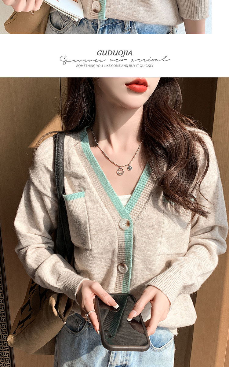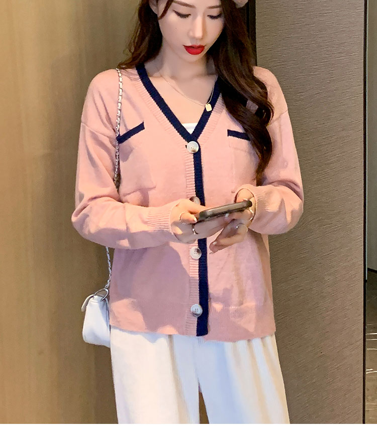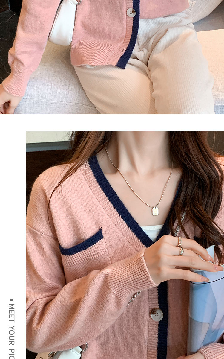 RM29870#新款设计感时尚洋气V领撞色针织开衫外套毛衣