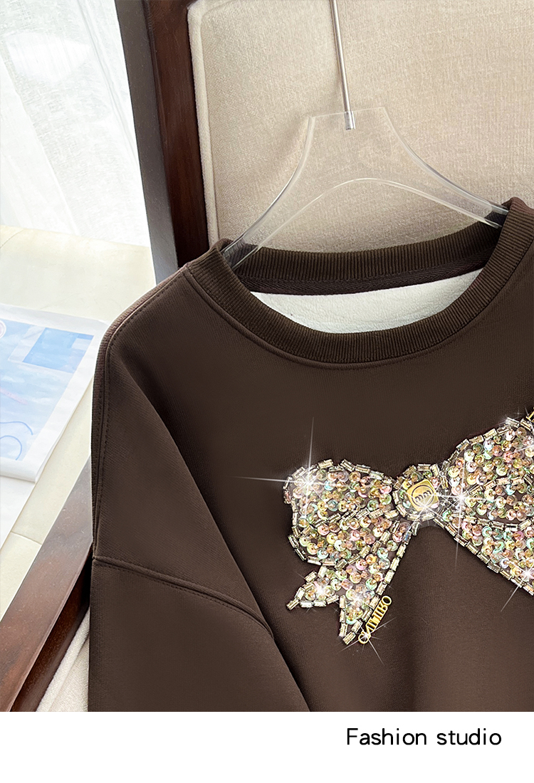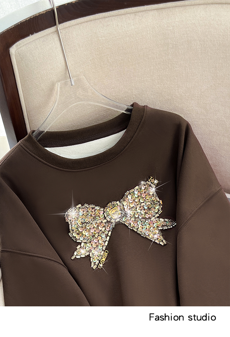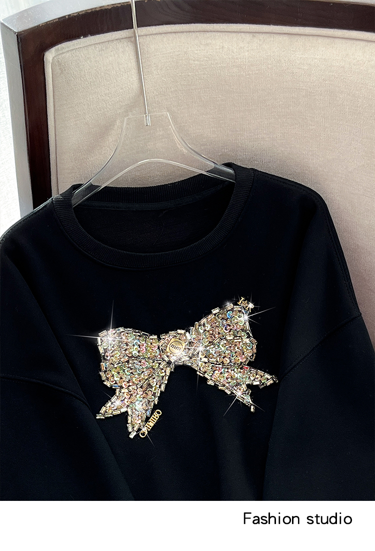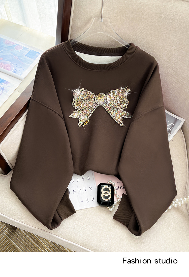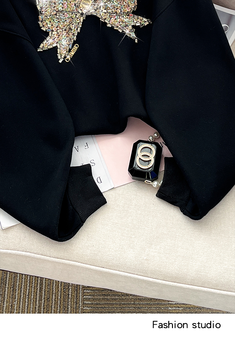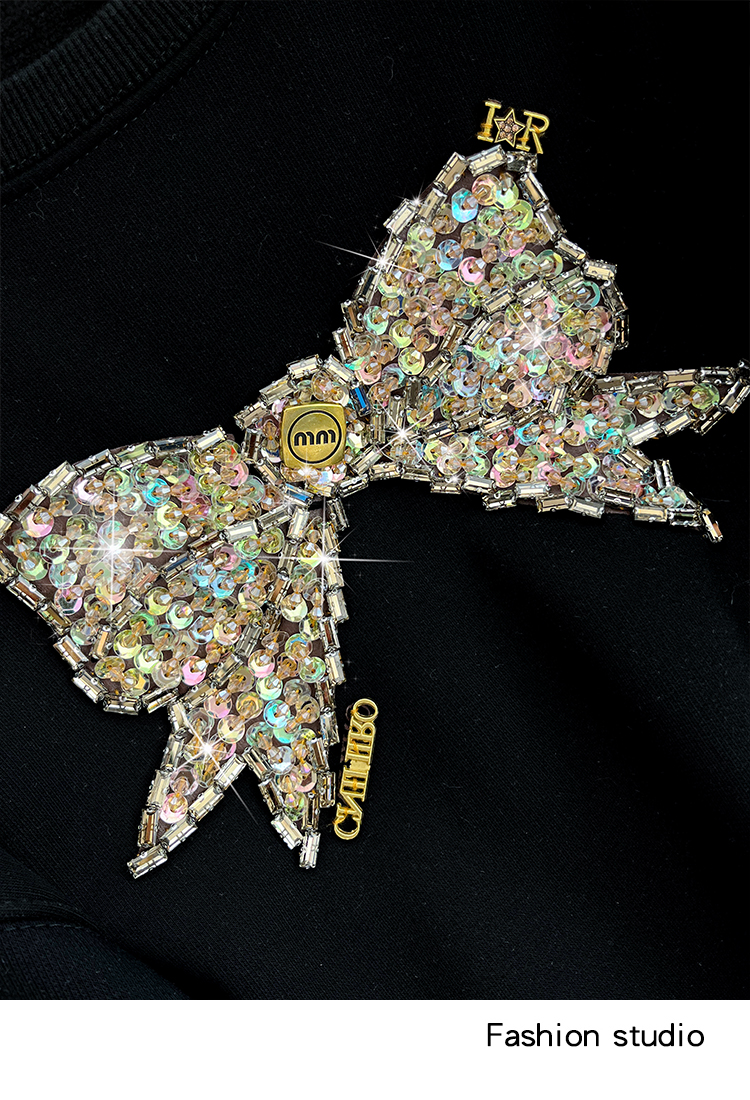 RM29893#蝴蝶重工镶钻高端加绒加厚圆领卫衣女宽松显瘦上衣