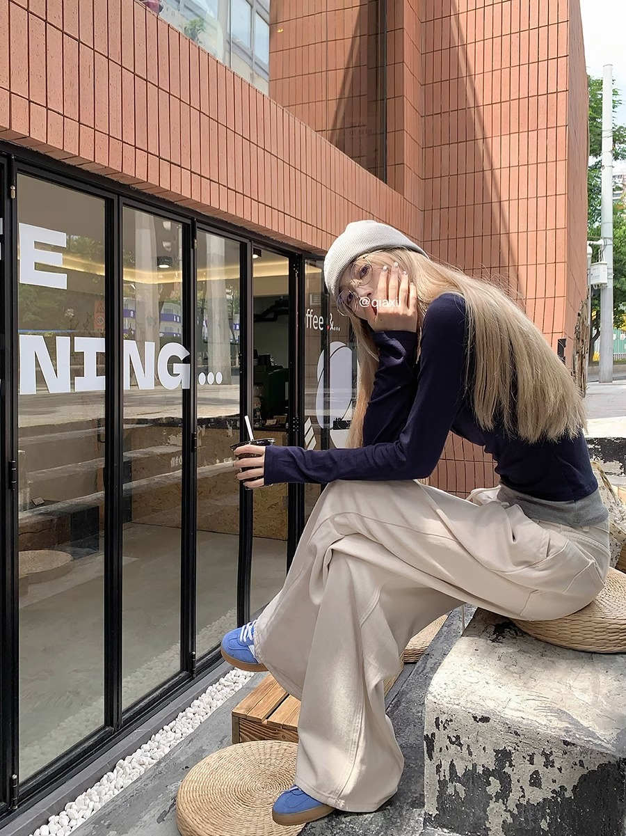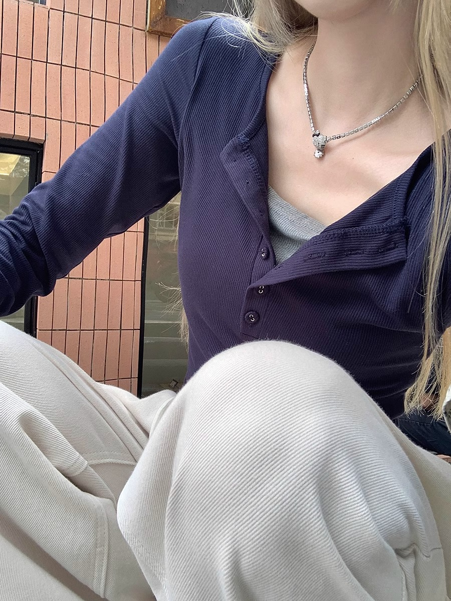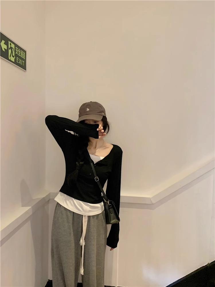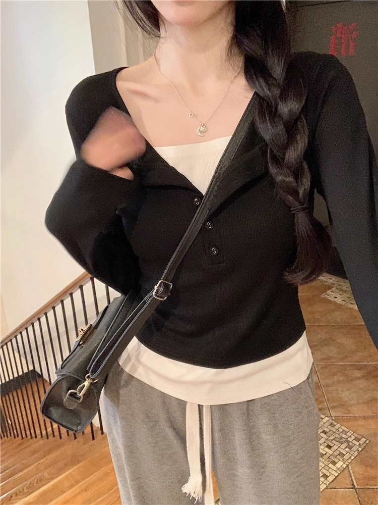 RM29901#假两件拼接长袖T恤上衣女秋季