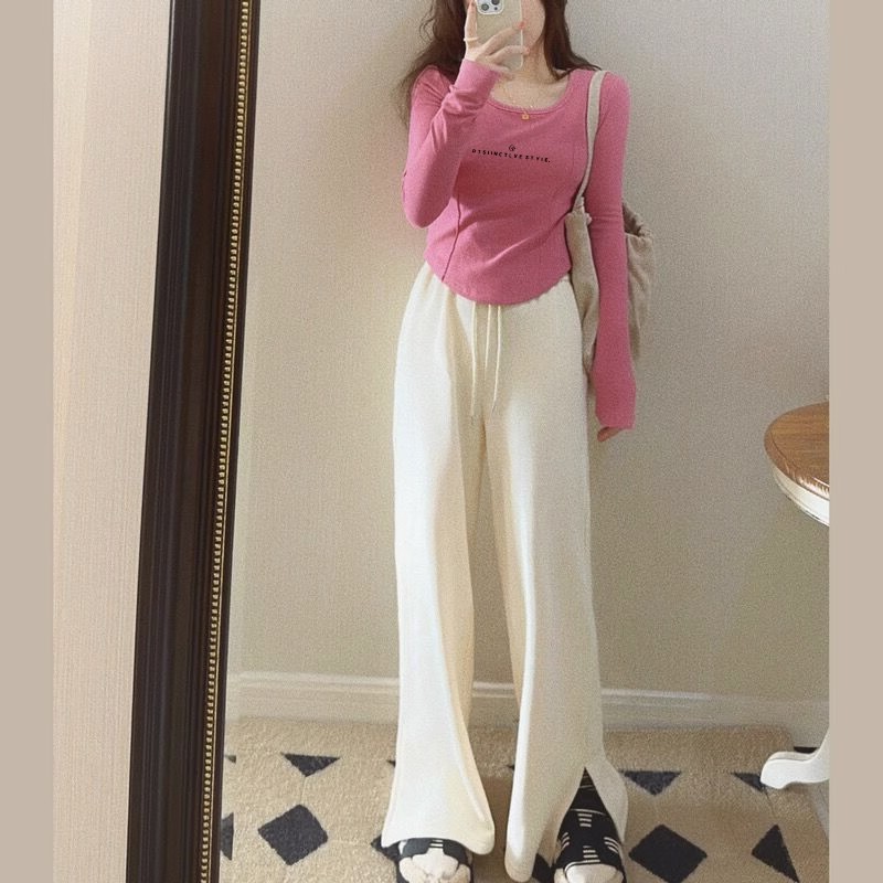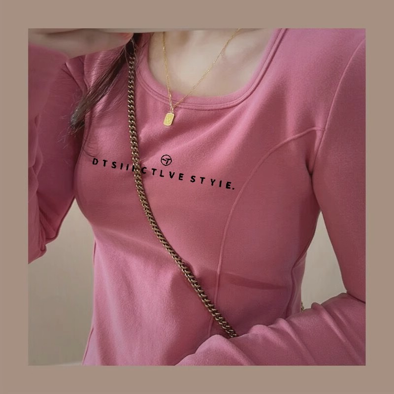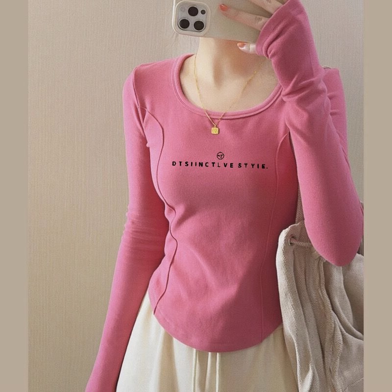 RM29905#修身弧形下摆长袖t恤女打底衫不规则别致设计感小众上衣