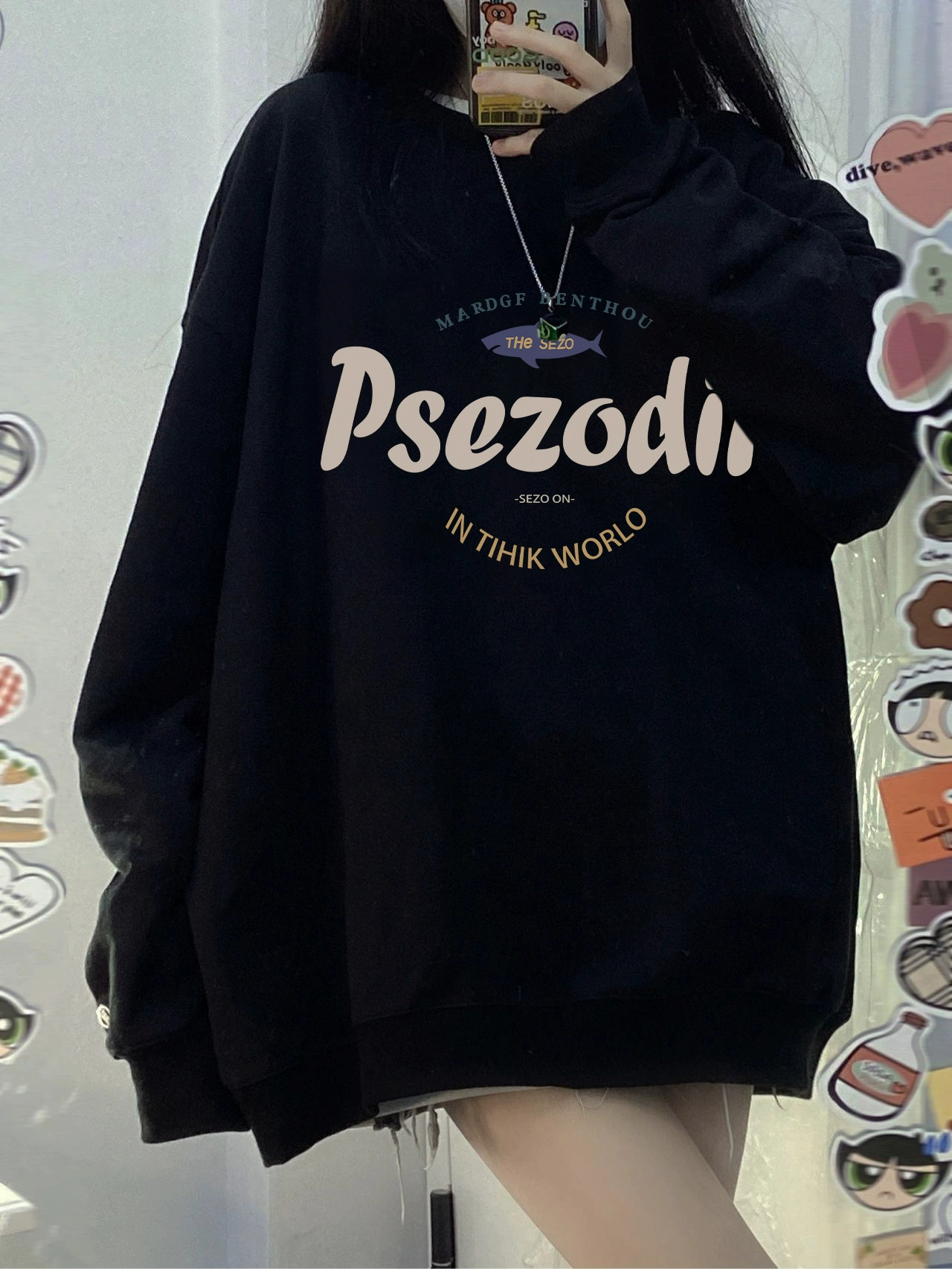 RM29910#华棉复合 秋冬装卫衣女印花宽松