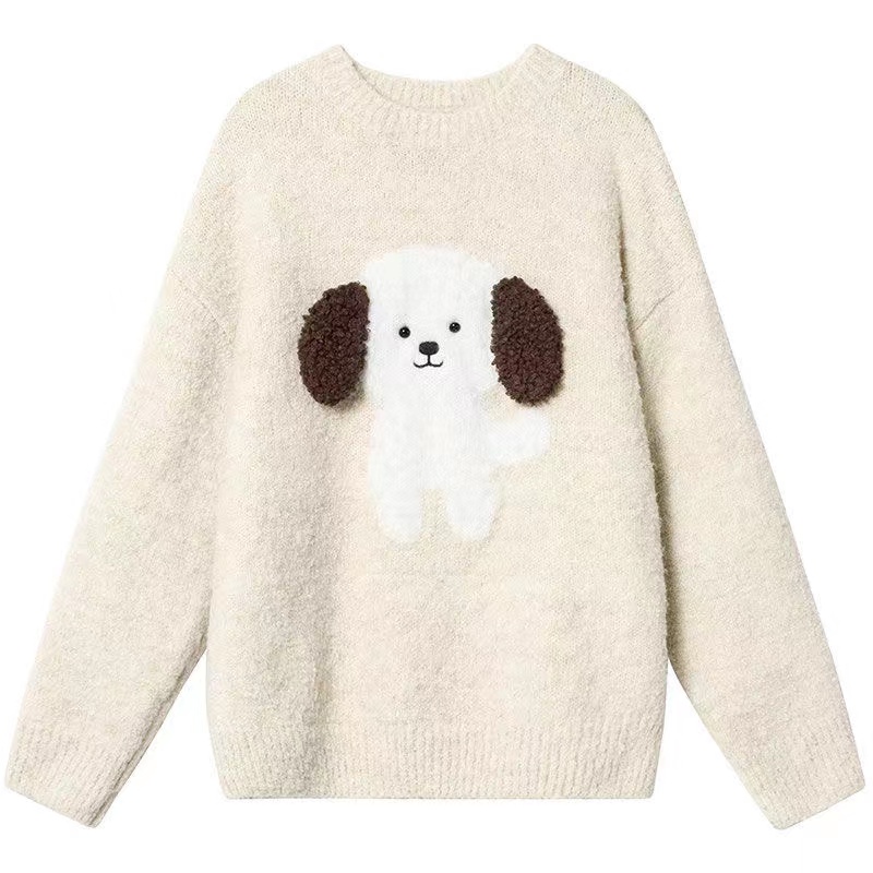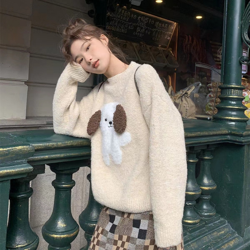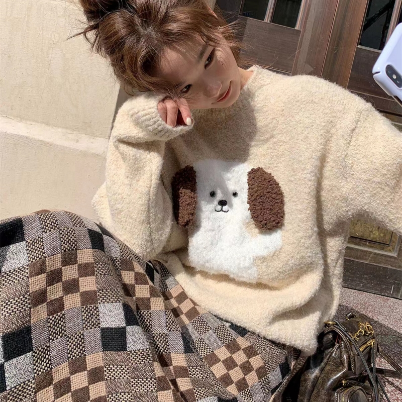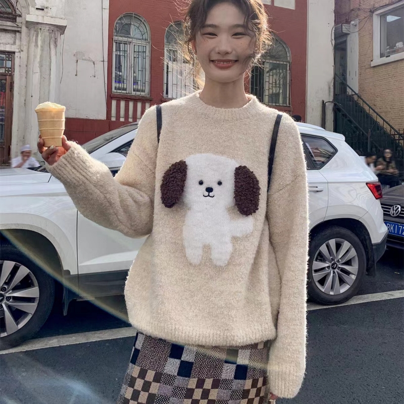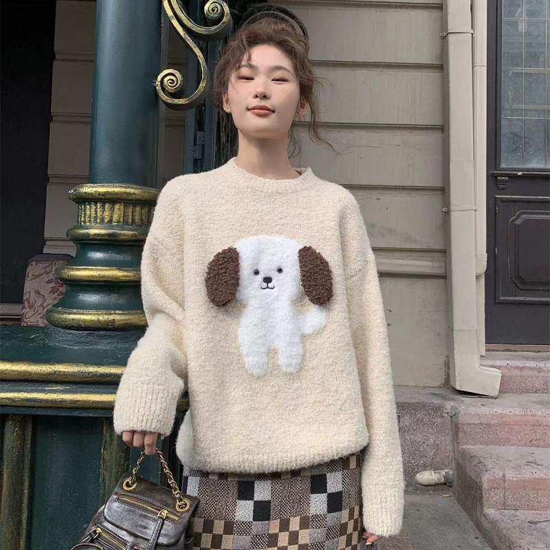 RM29915#毛绒加厚可爱圆领慵懒风毛衣女2023新款宽松慵懒小个子针织衫上衣