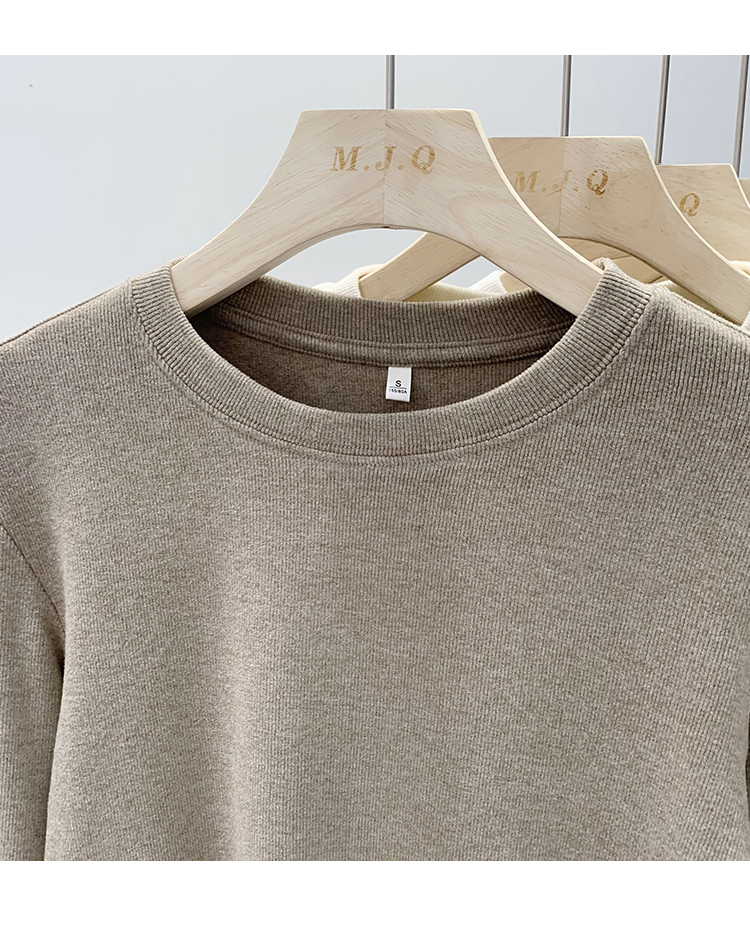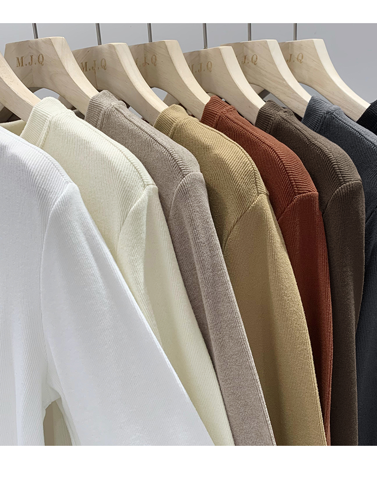 RM29930#基础款正肩直角肩灯芯绒圆领多色系列羊绒T恤